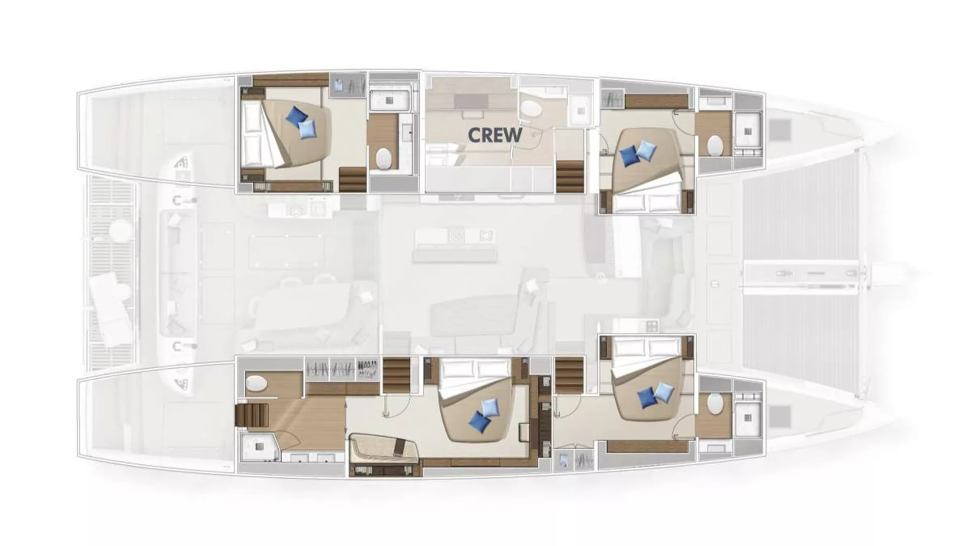TriWing Endor is designed to be fully silent when running the A/C at night. With a full set of lithium batteries and dedicated inverters for the A/C units, you and your guests won't have to suffer the sound of the generator whilst you sleep, a typical problem on most other boats!