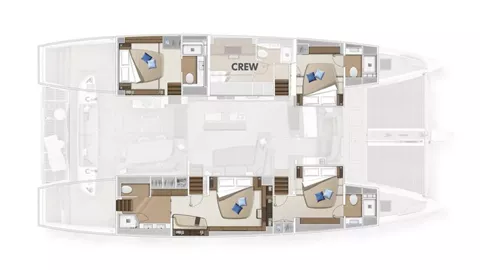 On top of this, Tri Wing Endor is the best in class when it comes to the Lagoon 65. No expense has been spared! As soon as soon as you step onboard you will be captivated by the exquisite craftsmanship, lavish amenities, and luxurious interiors that rival those of a five-star hotel.