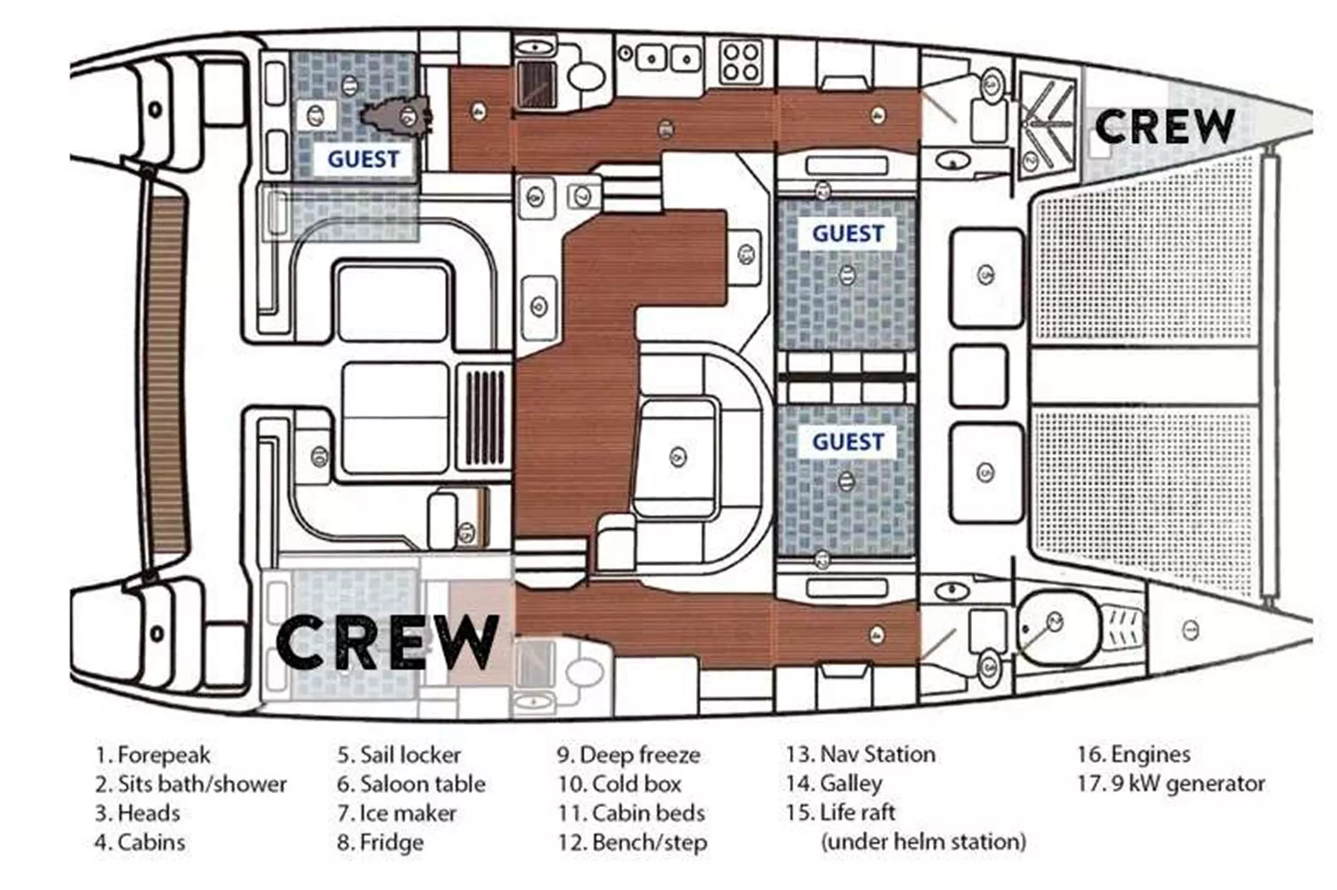 With generous deck space and a stable, fast-sailing platform, KISMET makes island-hopping feel effortless. Whether you’re soaking in the views from the forward deck or enjoying starlit evenings with a gentle breeze, every detail of this yacht has been designed to maximize both safety and comfort.