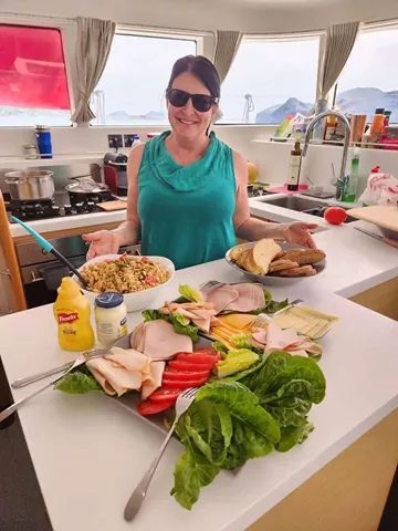 Known for her warm presence and thoughtful approach, Joan creates an atmosphere where guests feel instantly welcomed and at ease. Whether through her beautifully prepared meals, attentive service, or personal touches, she ensures each charter is an experience to savor long after the sails are down.