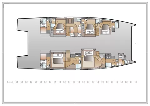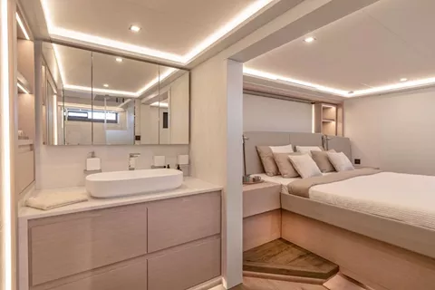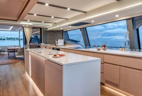 This 5 cabin version features the galley up so rather than the chef being hidden away, charter guests can witness the chef conjuring up all sorts of deliciousness.