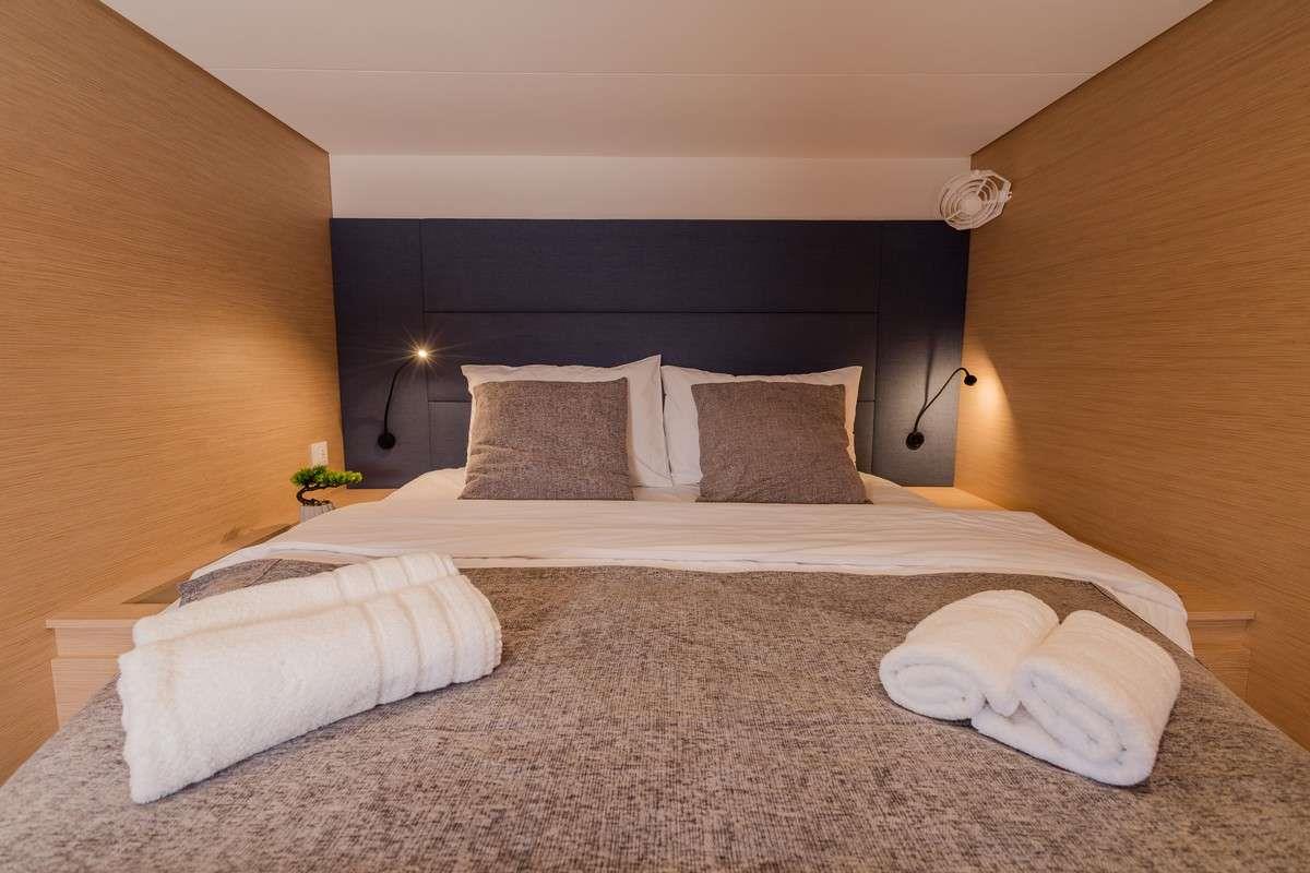 One master cabin and 4 double cabins, each one with en-suite facilities.
