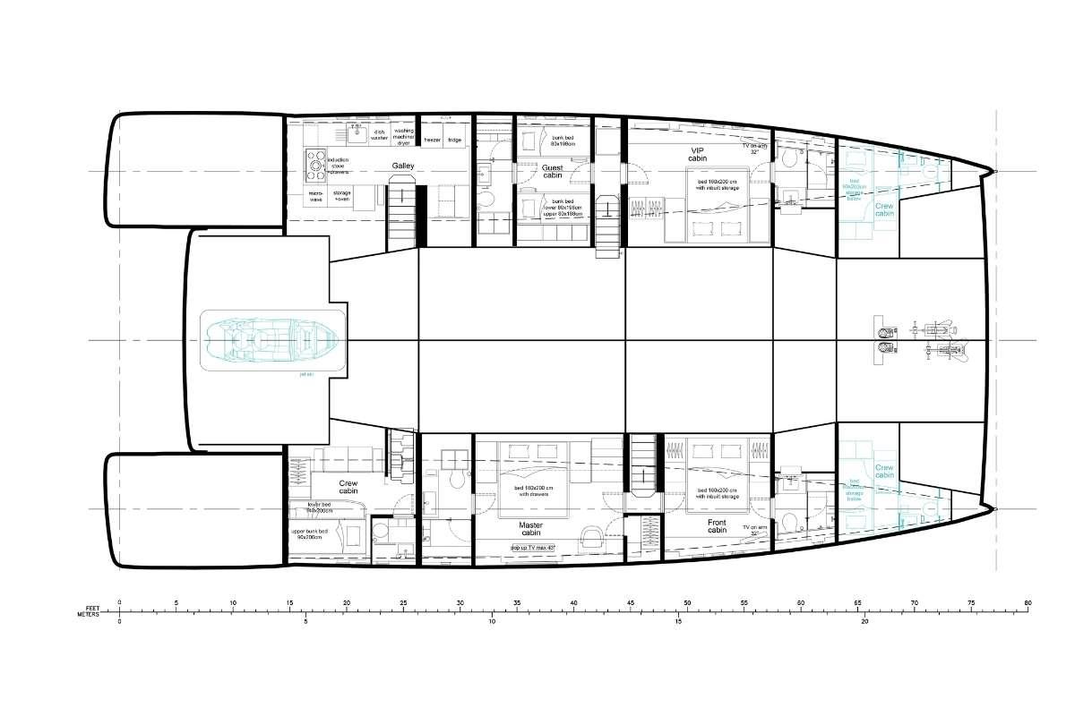 Designed with Sunreef Yachts’ advanced eco technology and signature craftsmanship, TESNI brings together refined interiors, expansive outdoor areas, and a quiet, effortless cruising experience. She welcomes up to 10 guests in 4 cabins, supported by a dedicated crew of 4.