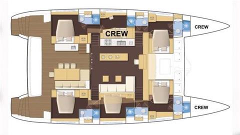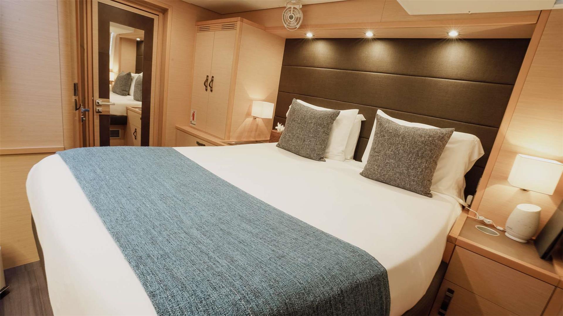 Sailing vessel Seahome is a 2016 Lagoon 620 catamaran, featuring Lagoon's stylish upgraded Essence decor. She is spacious and elegantly appointed with a sprawling interior that features luxurious leather accents throughout. Seahome hosts up to 10 guests in five queen-sized, air- conditioned cabins. The headroom is 6’9ʺ and all the beds are fitted with custom made memory foam mattress for the ultimate restful experience at sea. Each cabin has its own, private en- suite bathroom with a separate shower and soft, fresh towels.