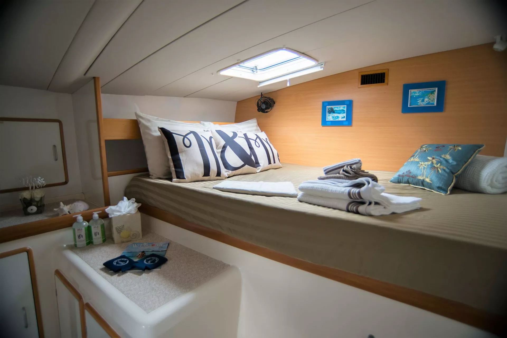 Free Ingwe offers 3 queen guest cabins each with an en-suite head and shower, air-conditioning, spacious cockpit and large deck for lounging in paradise, come join us!