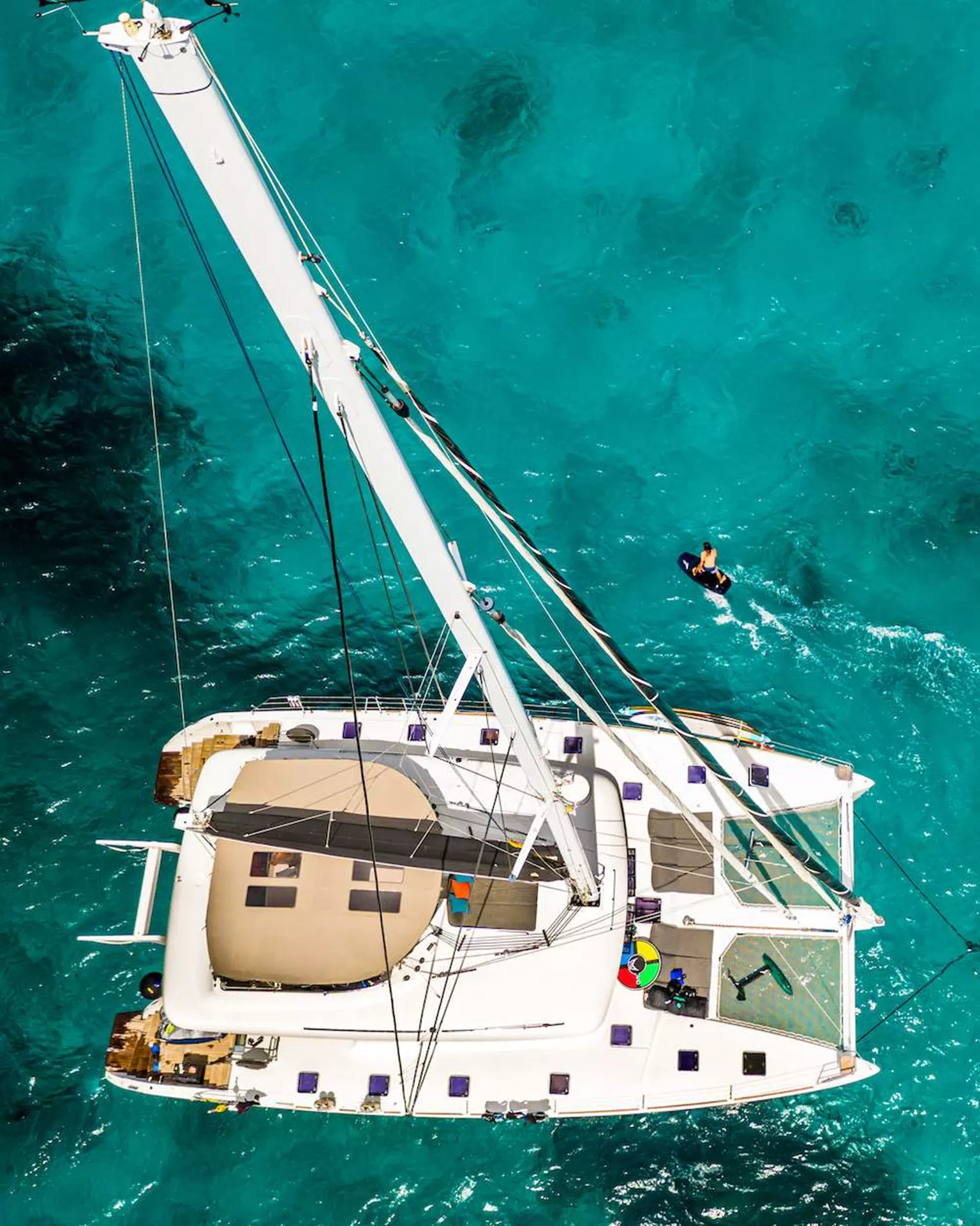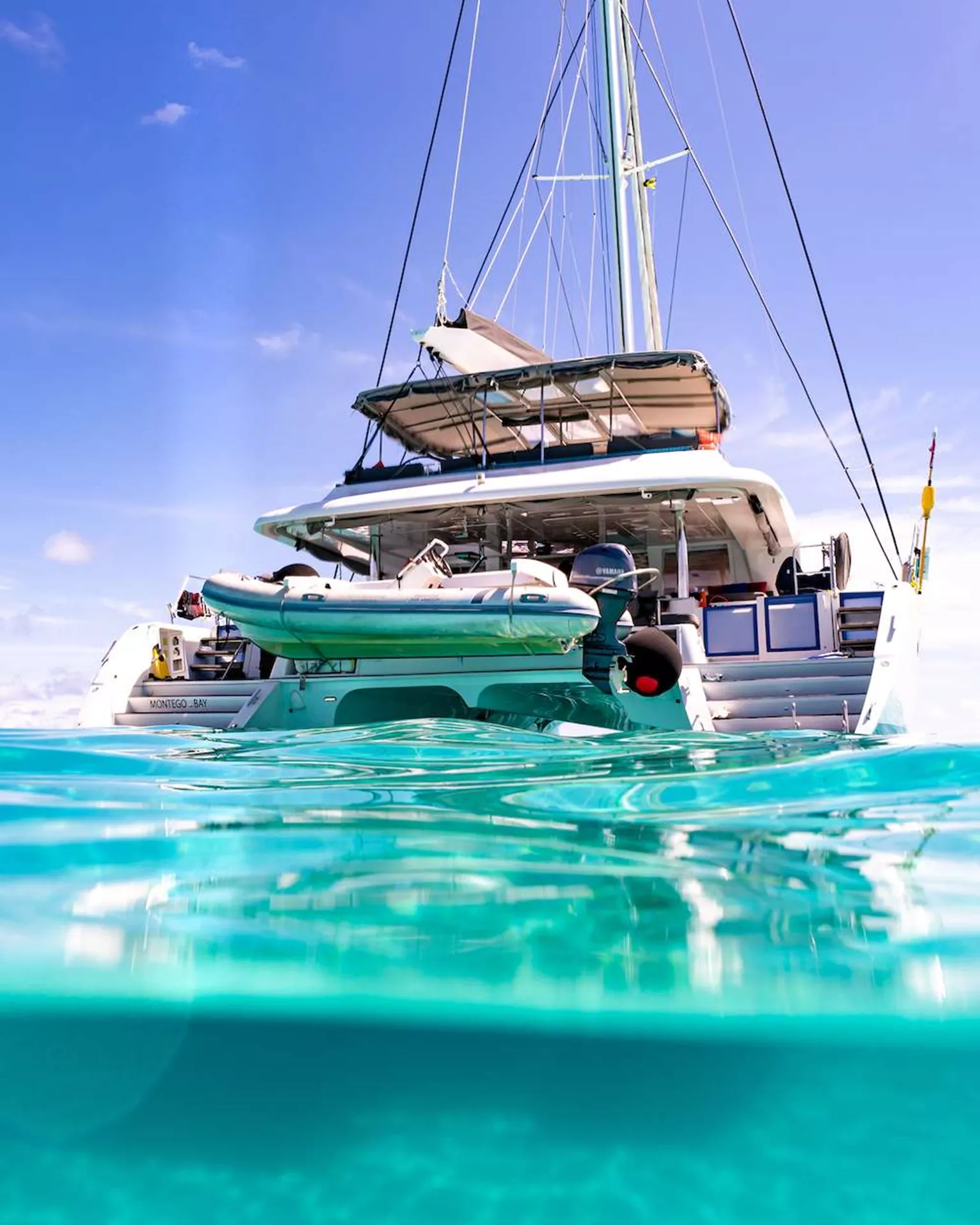 The boat is fully equipped with snorkeling equipment and an abundance of water toys. For those interested in scuba, Huntress has an assortment of top-of-the-line dive gear for that off-the-boat diving experience. Your captain is a fully certified Divemaster and would love to share his passion for diving with his guests and can lead guests on their dives. After an adventure filled day of water sports, swimming, diving, or on-shore excursions, enjoy the well-lit and large cockpit dining area as you enjoy a world class meal with your friends and family. Enjoy a handmade cocktail prepared just for you by your professional crew right there at the cockpit bar. Top-tier service is central to life onboard Huntress, and only adds to the exclusive feel of this impressive experience. You will know the meaning of peace, relaxation and class when you charter with us on Huntress. Swimming in the turquoise waters of the Caribbean you'll wonder why you never did this sooner.
