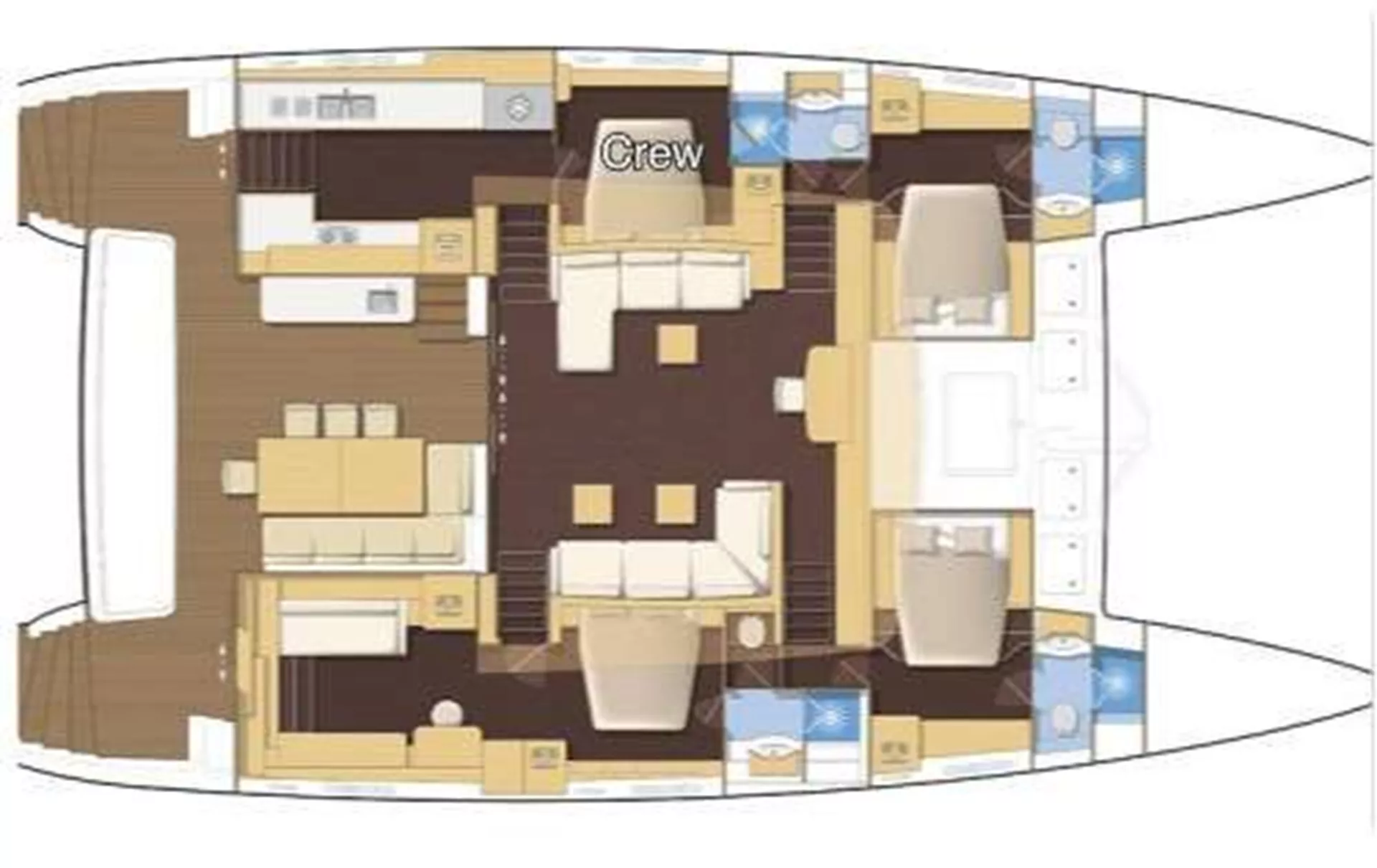 The three spacious air-conditioned staterooms are fitted with high end materials and furniture that allow for a nearly unprecedented level of comfort. Guests can enjoy their gourmet meals in our luxurious cockpit seating area and then lounge with a cocktail on the massive sun-deck afterwards. The gull-wing bridge deck design allows for greater comfort and smoother sailing, despite heavy seas.