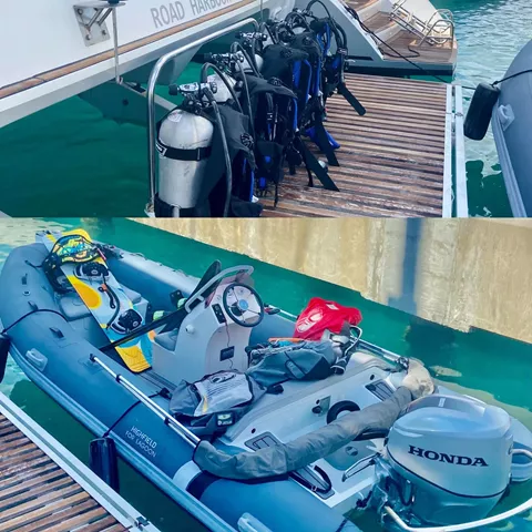 Le Reve is equipped with an impressive array of water equipment, including but not limited to skis, paddle boards, snorkeling gear, kiteboarding gear, and SCUBA with a compressor.