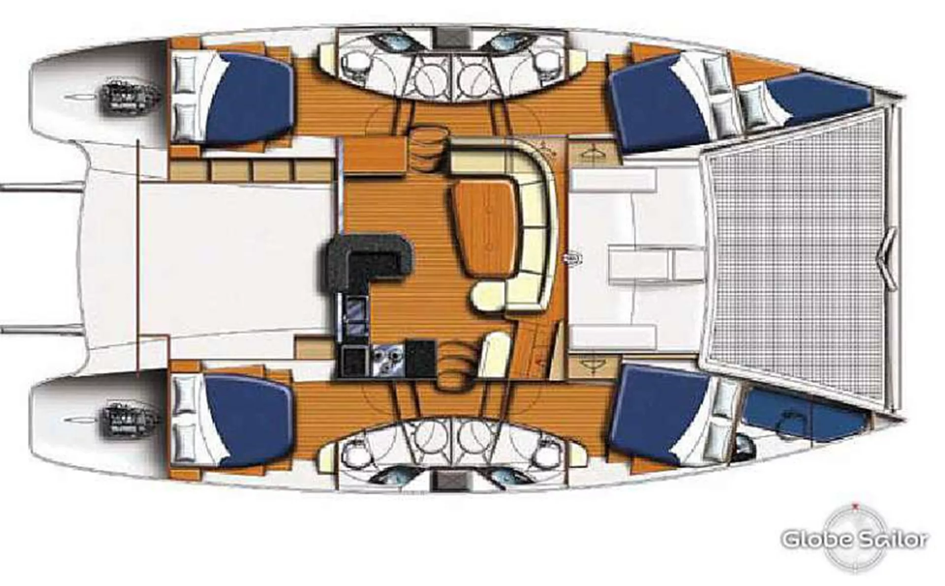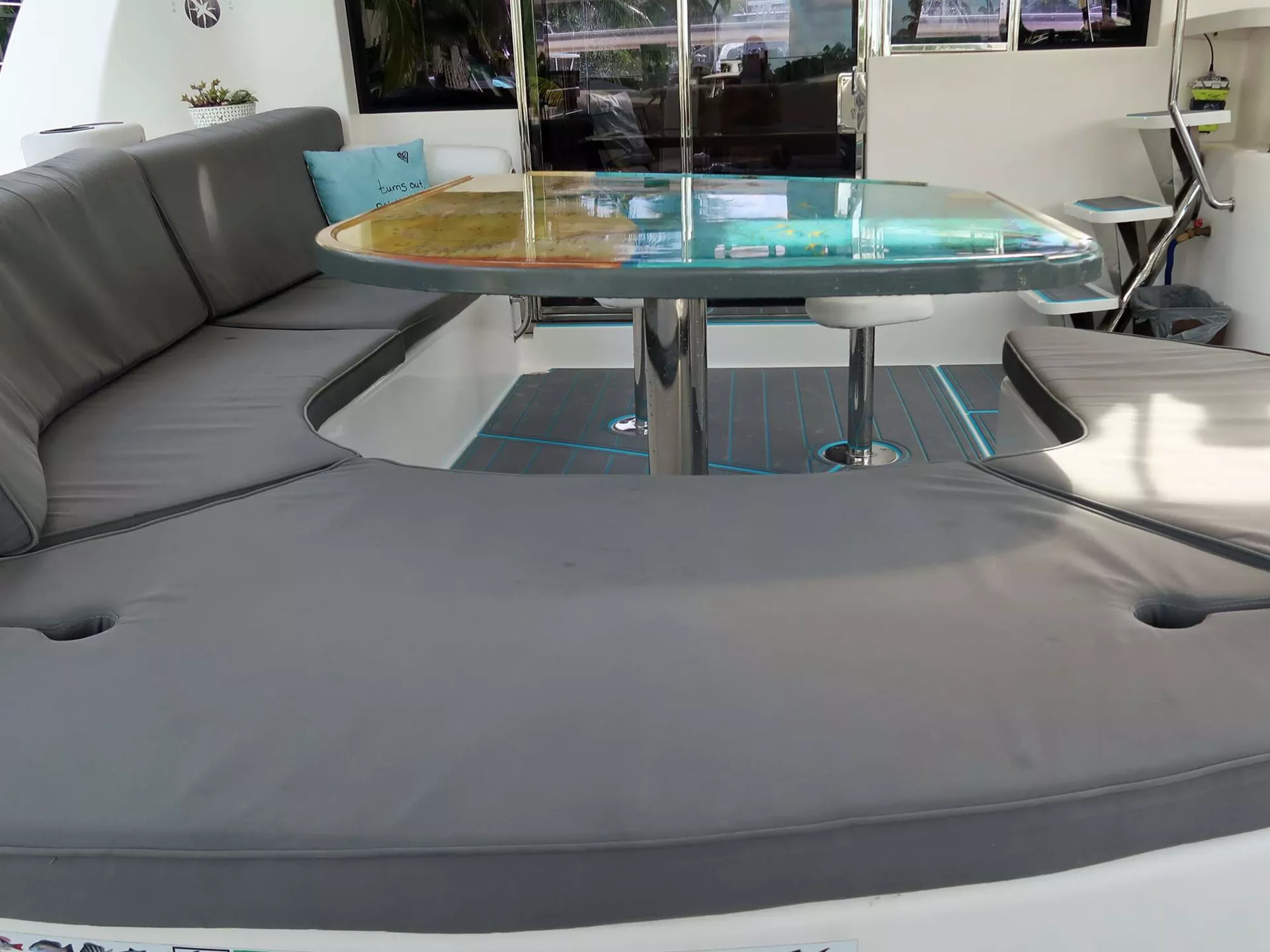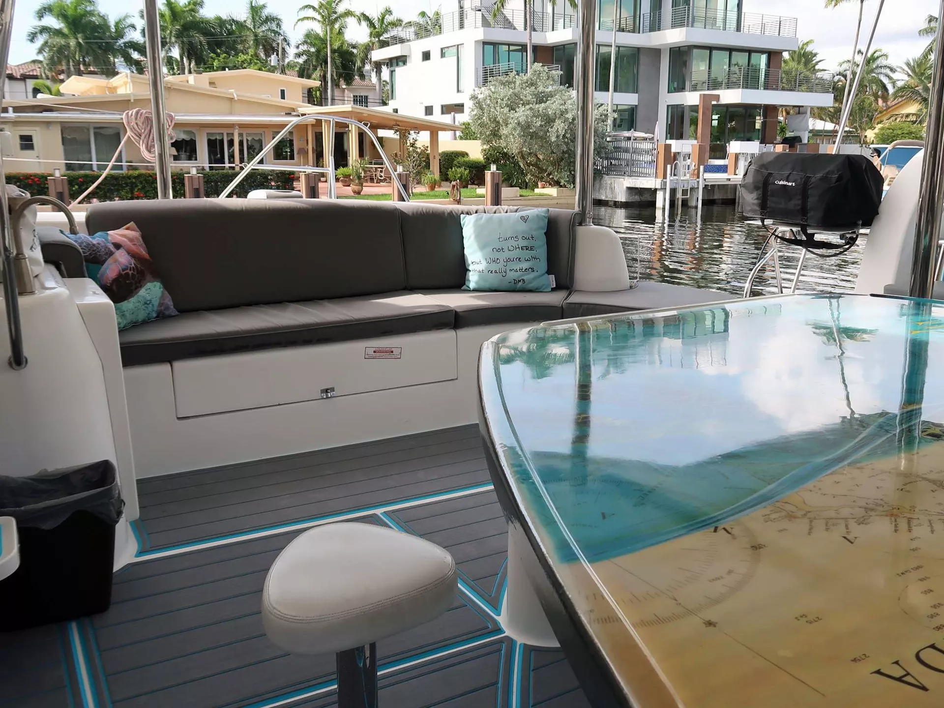 The deck space and living areas also create plenty of areas to lounge, dine, and take in the scenery. The unique cockpit table with map of the cruising region is always fun to check out as your journey to these beautiful destinations.