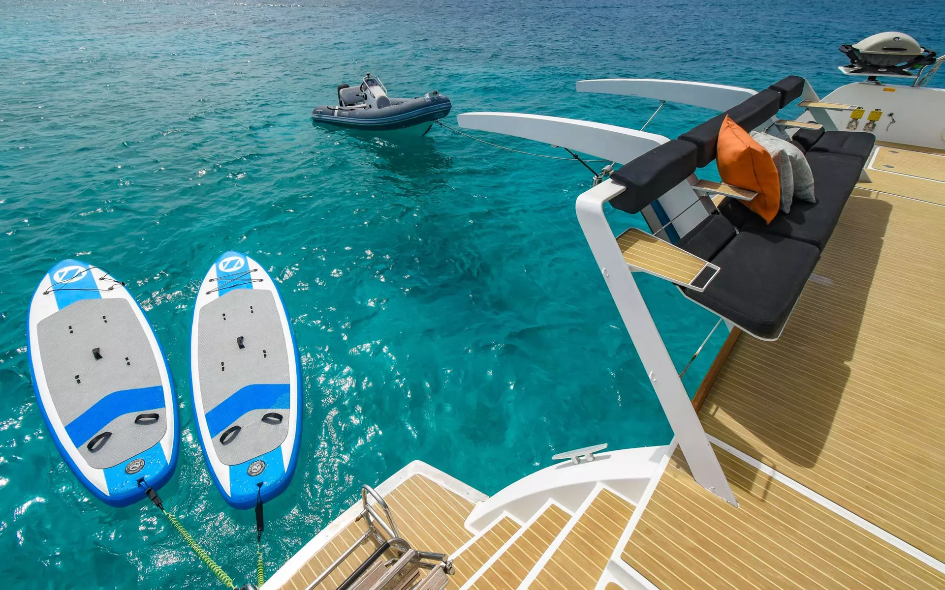 Oui Cherie houses 3 extra-spacious queen staterooms- including a stunning Master and VIP cabin. All guest cabins include their own private ensuite head and stand alone shower. This yacht offers extraordinary space for its size both above and below deck and is suitable for any variety of people desiring to get away: families, friends, coworkers, children, couples- you name it!