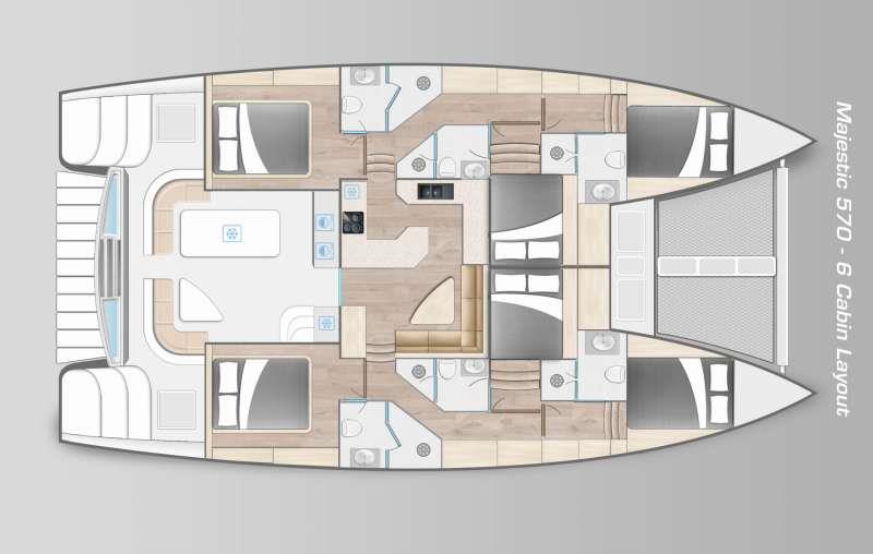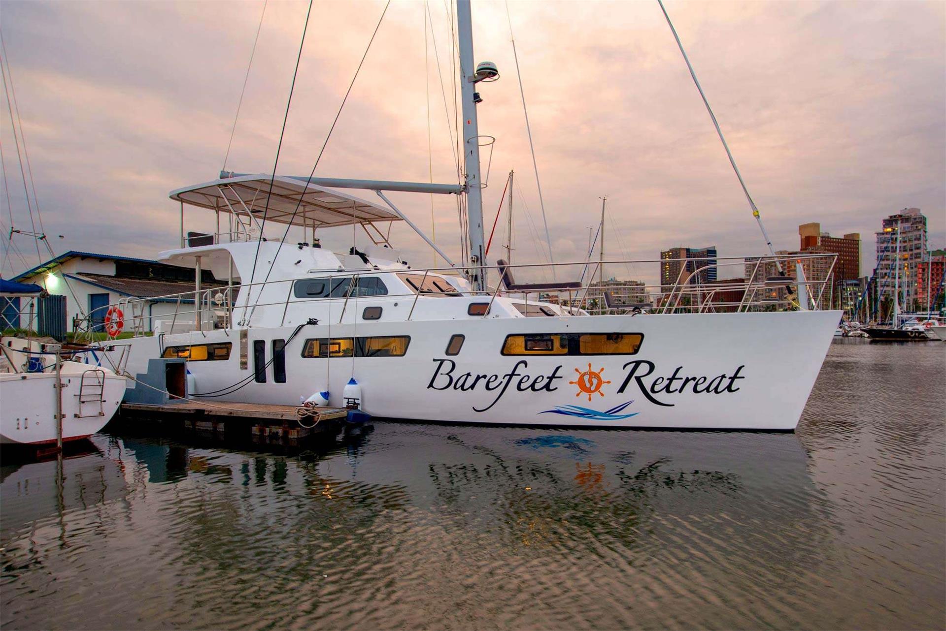 Barefeet Retreat accommodates up to 10 guests in 5 luxury queen cabins each with its own on-suite head and shower. All guest cabins are fully air-conditioned for guest comfort. Barefeet Retreat has a galley-up layout with all the modern amenities needed for the ultimate family and friend vacation.