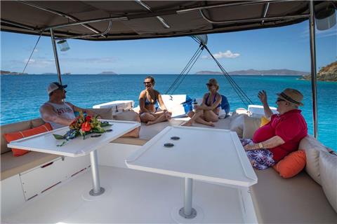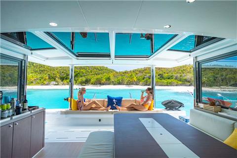 This “Multihull of the Year” award-winning Bali 5.4 catamaran sets the stage for an amazing getaway. Big Nauti is a brand new 2021 catamaran with numerous panoramic lounge areas positioned throughout the yacht. She showcases a solid foredeck that boasts a large relaxing lounge area and additional day beds for sunbathing. Enjoy the large, relaxing and comfortable space afforded by the covered flybridge with panoramic views of your beautiful surroundings.