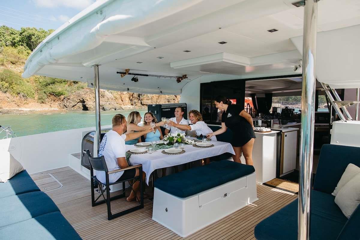 Georgie Baxter, originally from the UK, brings warmth, energy, and an eye for detail to her role as Chef and First Mate. With a background in event management and a strong foundation in hospitality, she effortlessly combines organization with charm to deliver exceptional service. Her culinary style is fresh, wholesome, and beautifully presented—creating dishes that nourish and delight, from sunrise breakfasts to vibrant, three-course dinners.