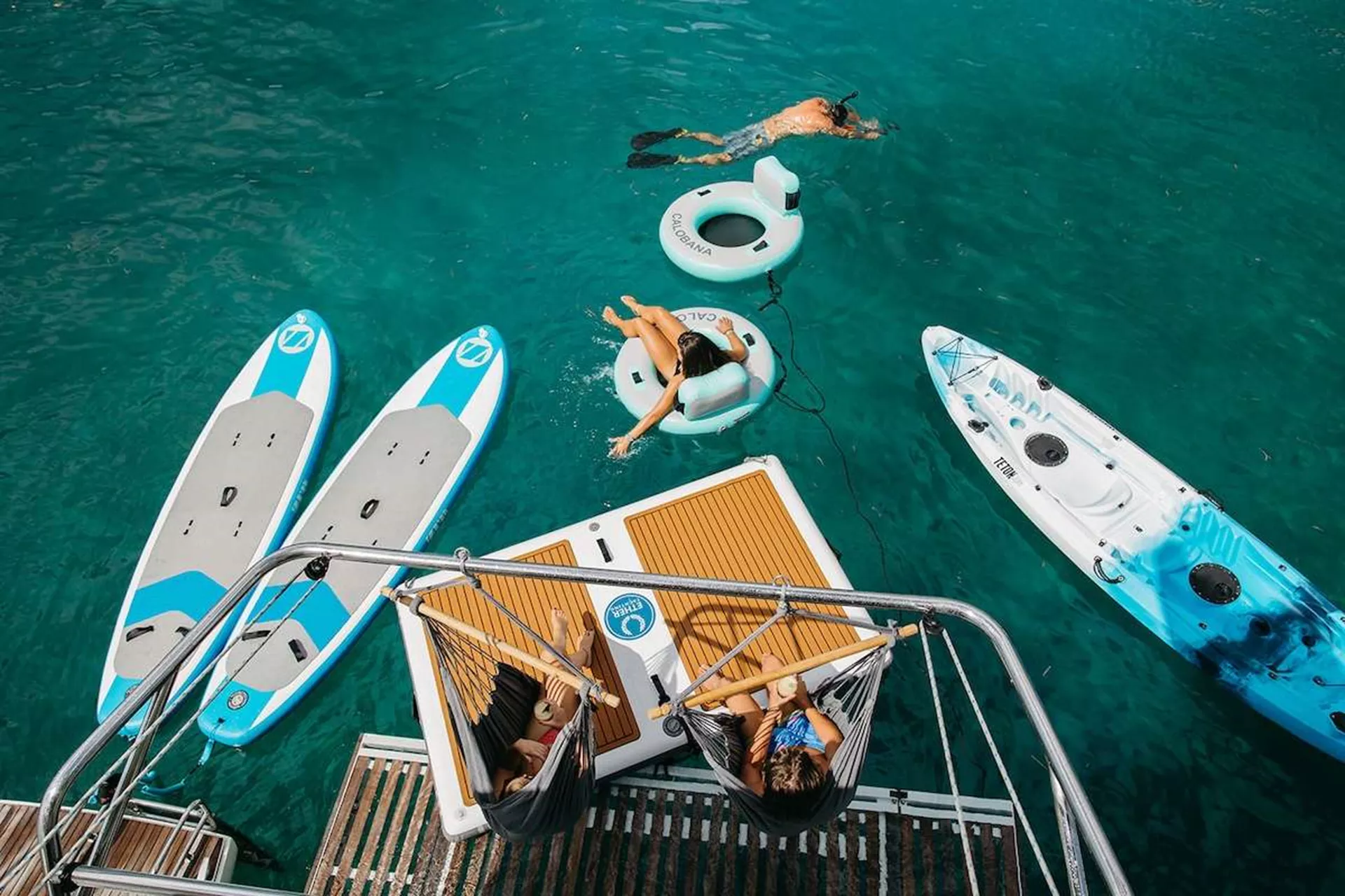 Ether is a 2022 Lagoon 50 Luxury Catamaran. No expense was spared outfitting this highly appointed yacht with premium high-end amenities and water toys. Ether’s award winning open concept design offers an abundance of space similar to that of super yachts including four individually climate controlled Queen cabins each with their own private showers and baths surrounded by beautiful stone, wood and leather finishes comfortably accommodating up to 8 guests. Ether’s Chef will prepare the most delicious meals for you and your guests while your Captain finds the perfect cove or private beach to explore on a paddle-board, snorkel, scuba, waterski or just lounge on one of Ether’s 3-stories enjoying the 360 panoramic views of paradise. We can’t wait to see you on board!