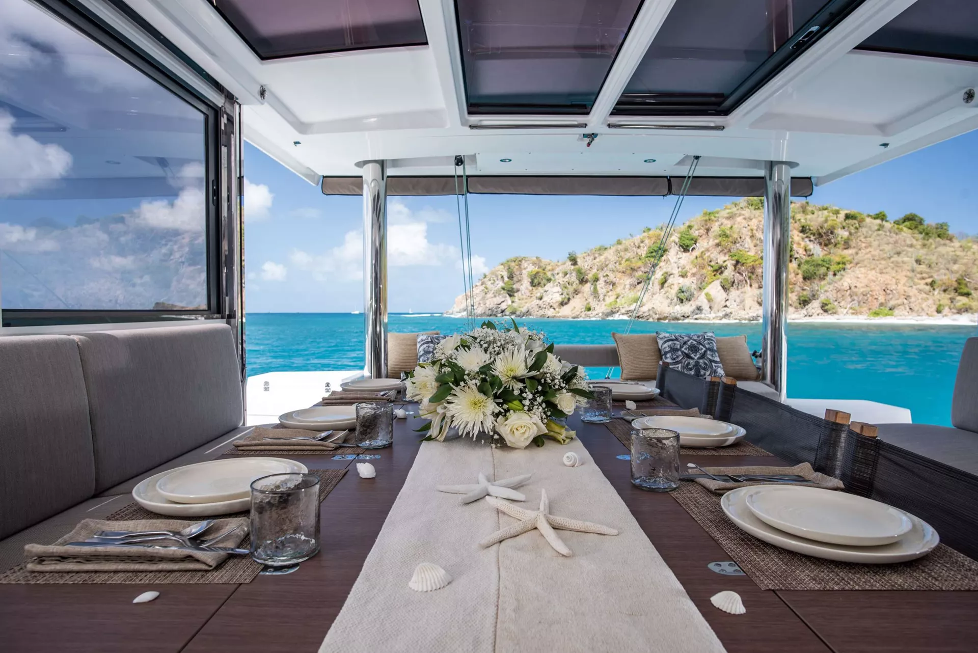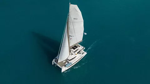 SERENITY is a 2022 49’ Bali catamaran that captures Bali’s signature “wide-open” lifestyle with bright spaces and effortless indoor-outdoor flow. Sleeps 8 in 4 Queen cabins, each with a private ensuite for true comfort and privacy. The fully equipped galley includes modern appliances and a full-size refrigerator, keeping meals and snacks easy all week. Outside, the solid foredeck delivers expansive seating and a serene lounge deck for morning coffee or sunset hangs, while the flybridge adds another favorite zone with table seating and panoramic views in the trade winds. A true highlight is Bali’s tilt-and-turn rear salon wall—open it up and the salon blends seamlessly into the aft deck for one continuous entertaining space. Airy, social, and beautifully livable—SERENITY makes island time feel effortless.
