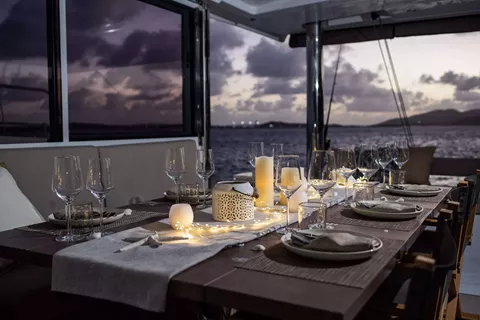 Enjoy a relaxed evening onboard before your charter begins.