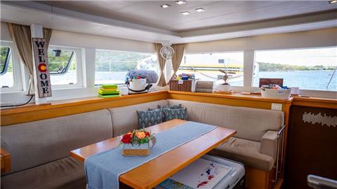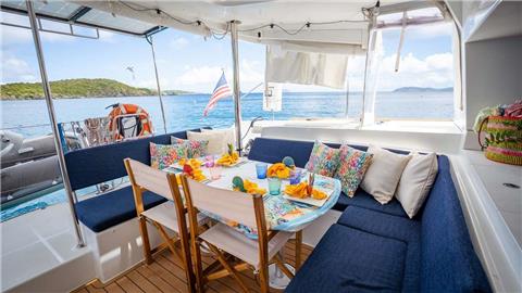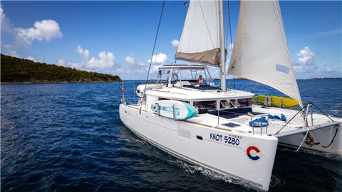 This beautiful 2016 Lagoon 450F Catamaran is built with 3 queen cabins each with private ensuite baths including electric heads, vanity and separate showers. She boasts multiple areas to sit and relax or sip a cocktail and enjoy the cool island breeze of the beautiful Caribbean. The salon will seat up to 6 guests in comfort for lounging or dining. The exterior aft offers alfresco dining for up to 6 guests, top deck seating and lounge area in front of helm plus forward lower deck lounge area behind trampolines. Crewed with the fun owners of the vessel, Capt. Joe and Chef/First Mate Holly, guests will never forget their experience on KNOT 5280!