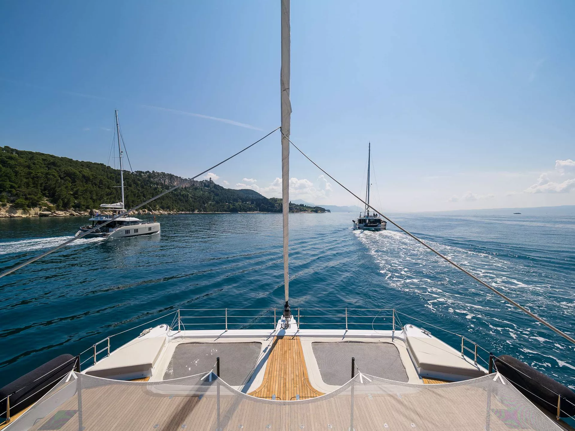 The Sunreef 50 ZARA delivers super‑yacht elegance in a compact, modern catamaran. She sleeps up to 8 guests in 4 spacious ensuite cabins, while separate crew quarters ensure dedicated service and full guest privacy. Relax on the expansive foredeck, dine alfresco in the cockpit, or soak in spectacular views from the flybridge. Whether it’s a romantic escape, a family retreat or a friends’ adventure, exploring the Adriatic aboard ZARA is a luxury sailing experience unmatched.