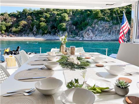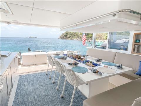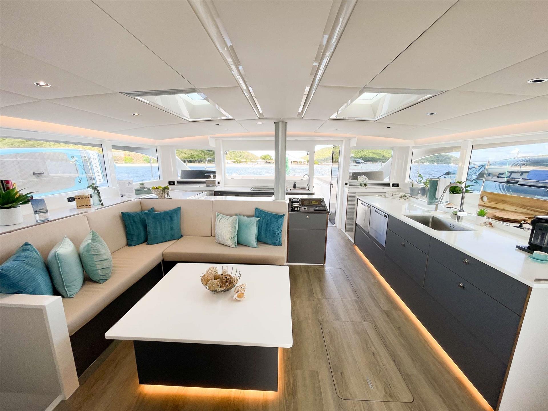 Experience luxury, adventure, and BVI bliss aboard SEVEN, a 2023 Voyage 590 sailing catamaran. With five equal queen cabins for up to 10 guests and four distinctive living and dining spaces, your group will have ample room on board to enjoy your time together or special quiet moments for two.