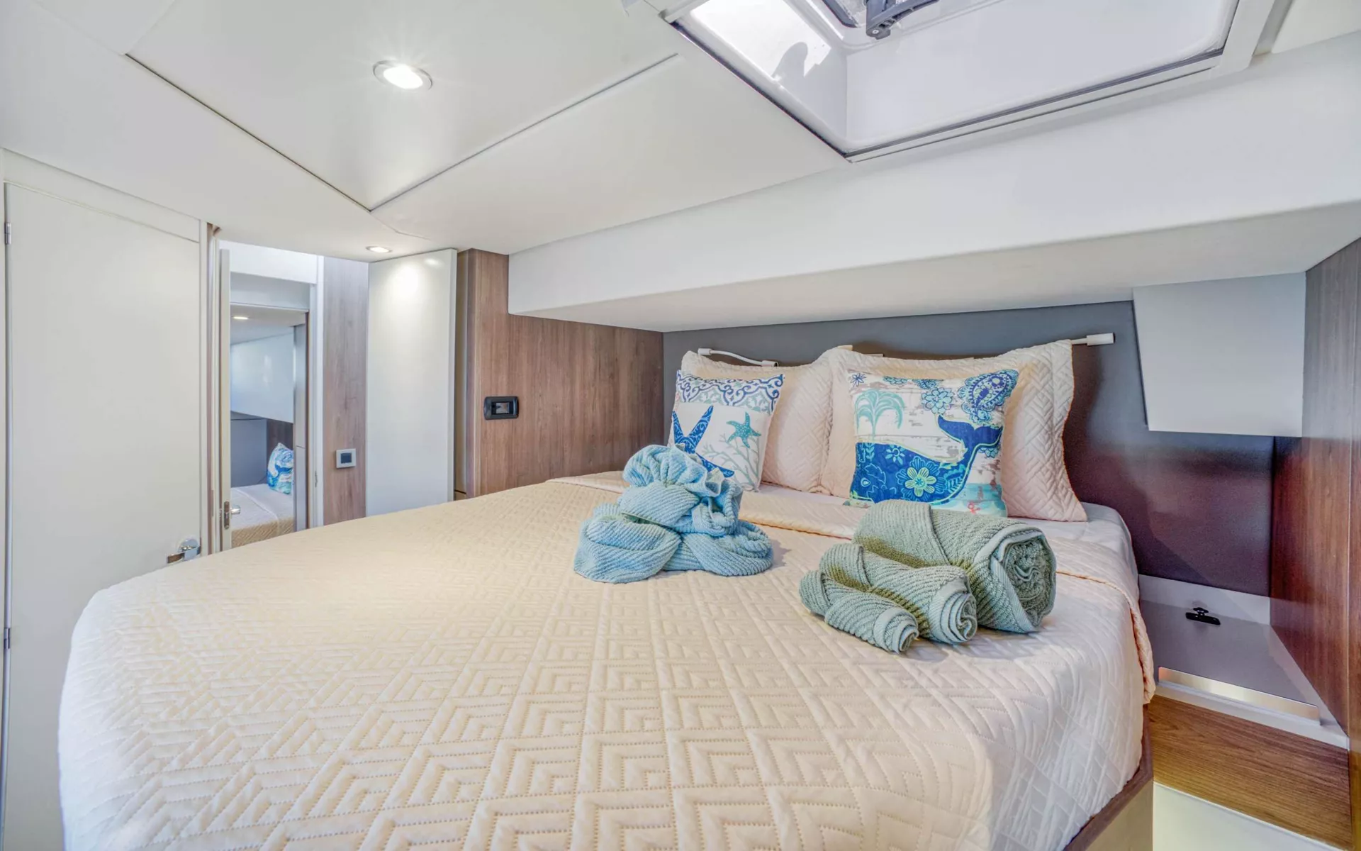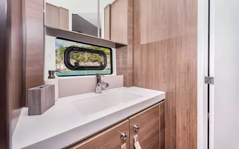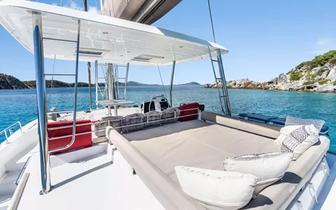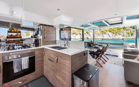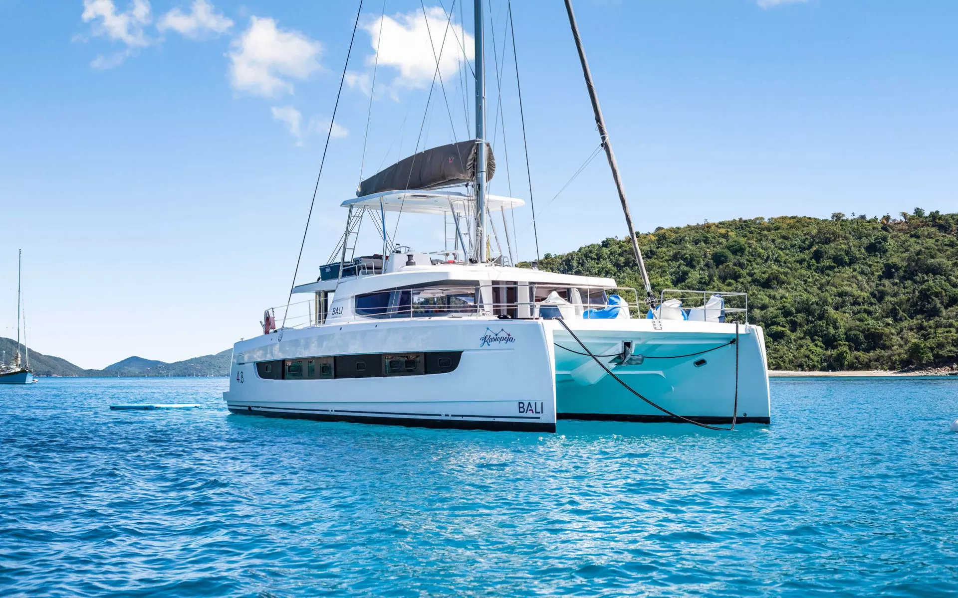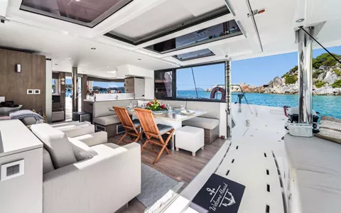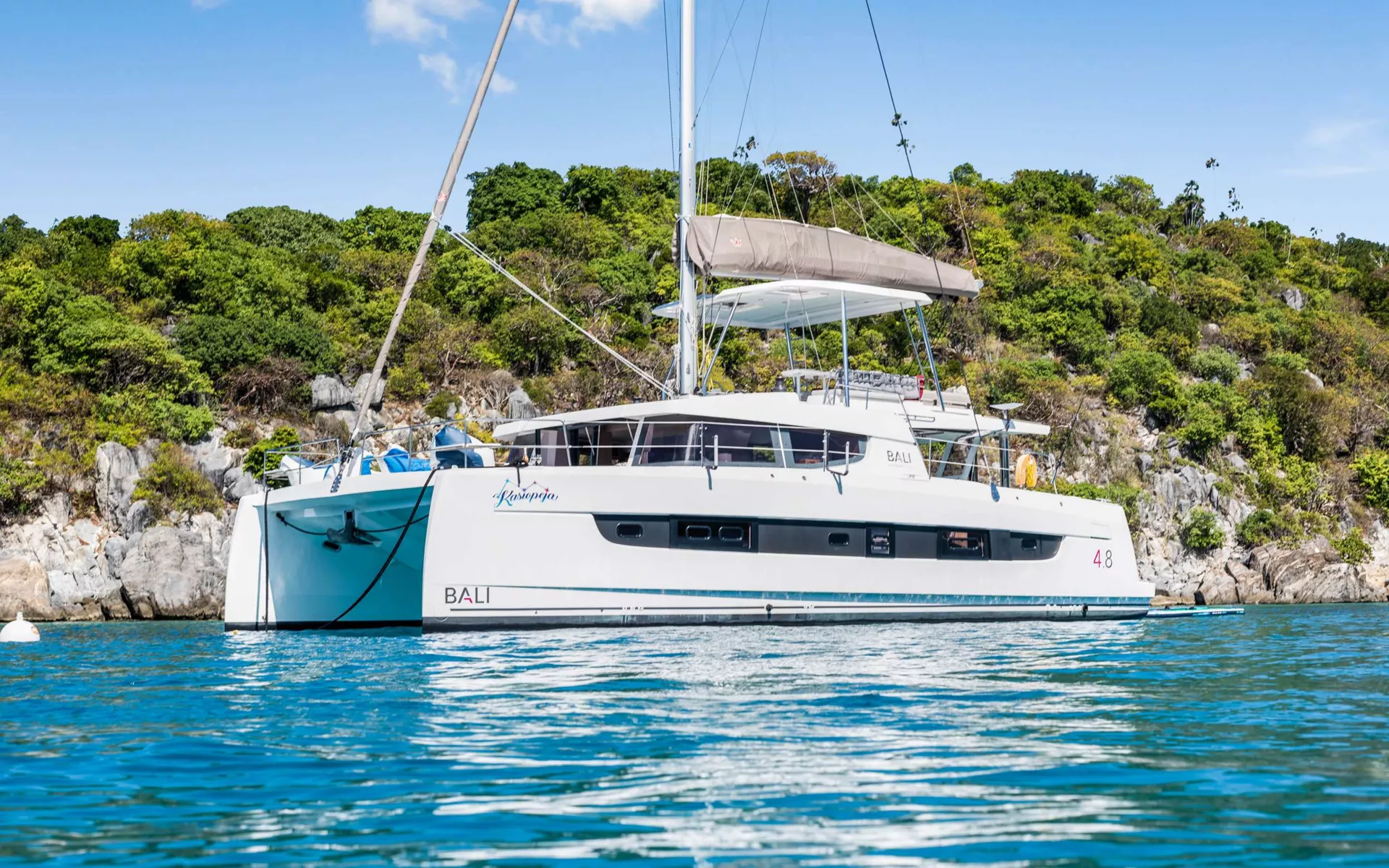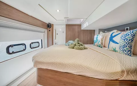 KASIOPEJA is a 2023 48’ Bali catamaran that delivers Bali’s signature “wide-open” lifestyle in a perfectly charter-ready size. Sleeps 8 in 4 Queen cabins—each with a private ensuite—so every guest gets true comfort and privacy. A true highlight is Bali’s tilt-and-turn rear salon wall that opens up to instantly merge indoor and outdoor living, creating one seamless entertaining space. Add the solid foredeck with expansive seating, a bright lounge deck made for slow afternoons, and a flybridge with table seating and panoramic views, and you’ve got nonstop “best seat on the boat” energy. Modern galley, full-size fridge, and smart design throughout keep everything effortless. Airy, social, and unforgettable—KASIOPEJA is Bali living at its best.