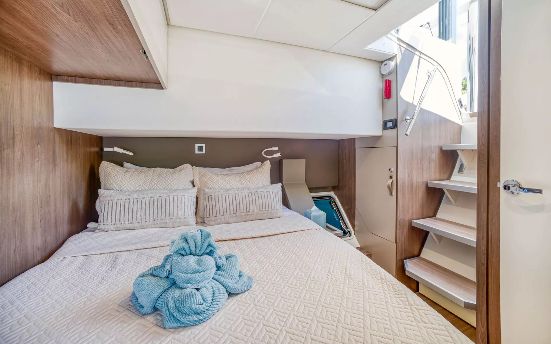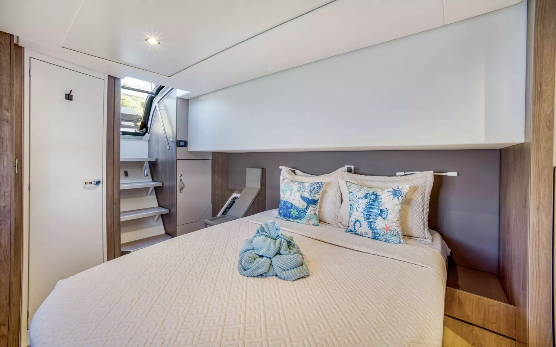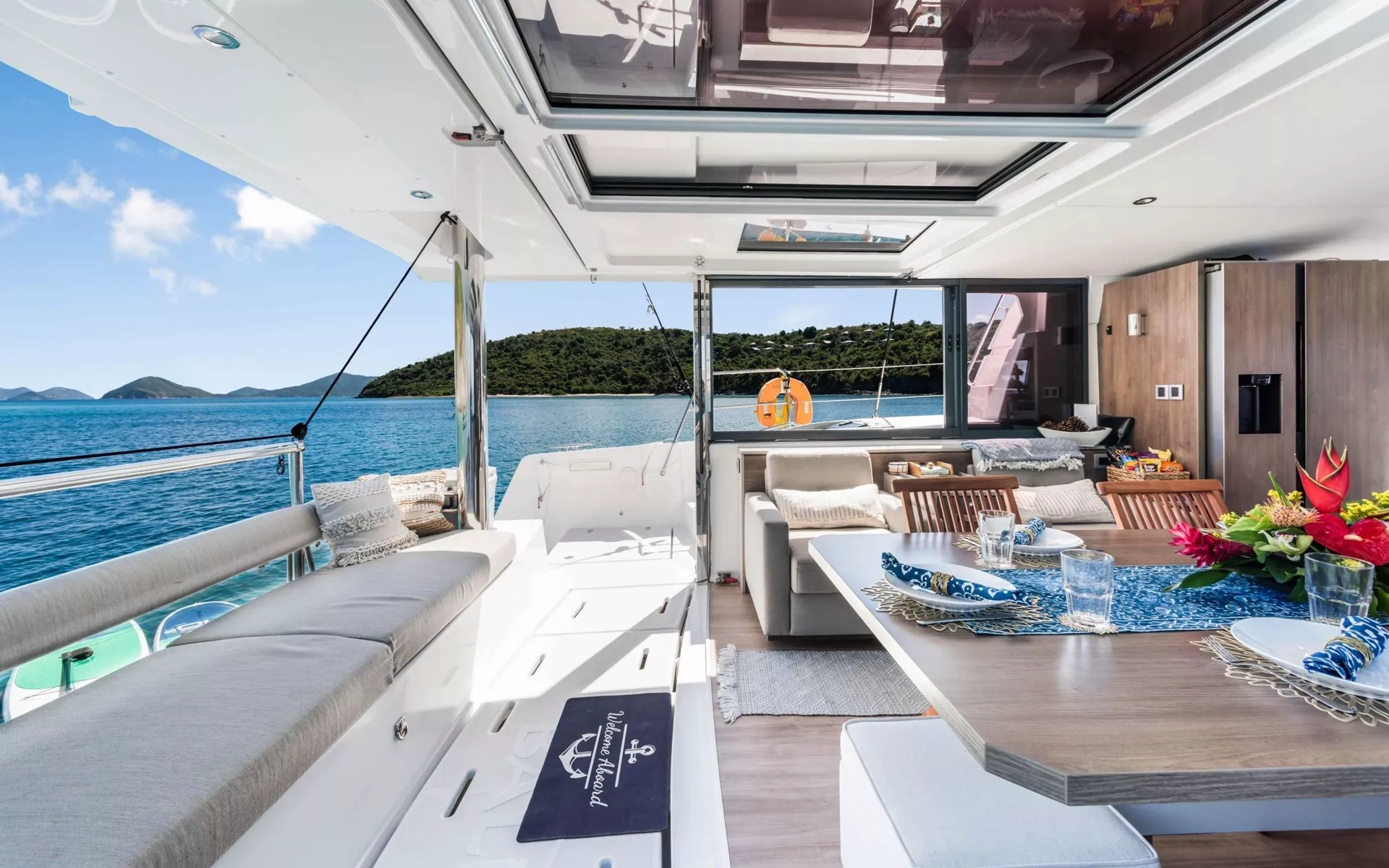 KASIOPEJA is a 2023 48’ Bali catamaran that delivers Bali’s signature “wide-open” lifestyle in a perfectly charter-ready size. Sleeps 8 in 4 Queen cabins—each with a private ensuite—so every guest gets true comfort and privacy. A true highlight is Bali’s tilt-and-turn rear salon wall that opens up to instantly merge indoor and outdoor living, creating one seamless entertaining space. Add the solid foredeck with expansive seating, a bright lounge deck made for slow afternoons, and a flybridge with table seating and panoramic views, and you’ve got nonstop “best seat on the boat” energy. Modern galley, full-size fridge, and smart design throughout keep everything effortless. Airy, social, and unforgettable—KASIOPEJA is Bali living at its best.