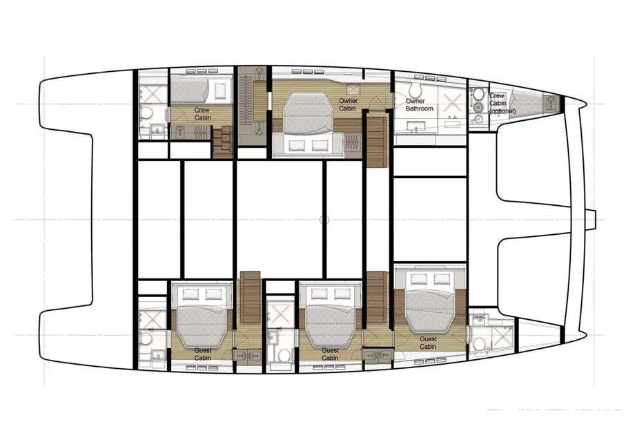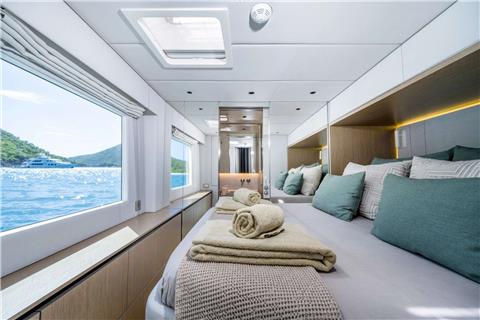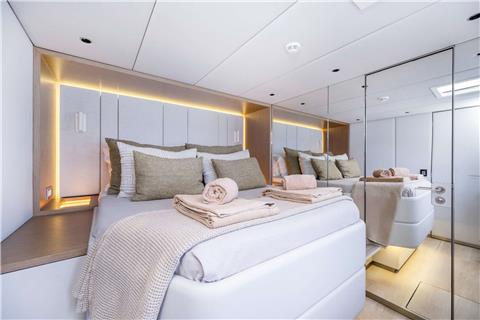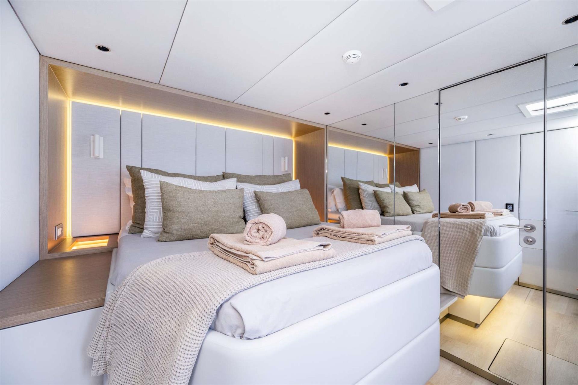 She welcomes up to 8 guests in four elegant queen en-suite cabins, combining quiet luxury with the stability and volume only a catamaran can offer.