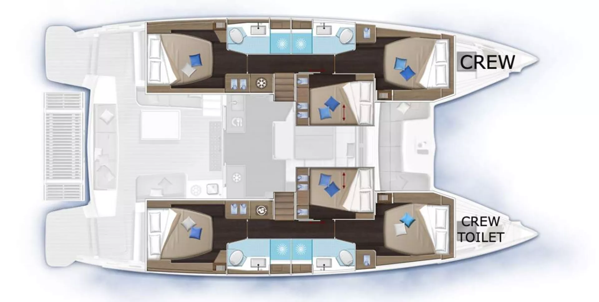Please note that middle cabins have following bed sizes: (2.00m x 1.08m / 1,36m)