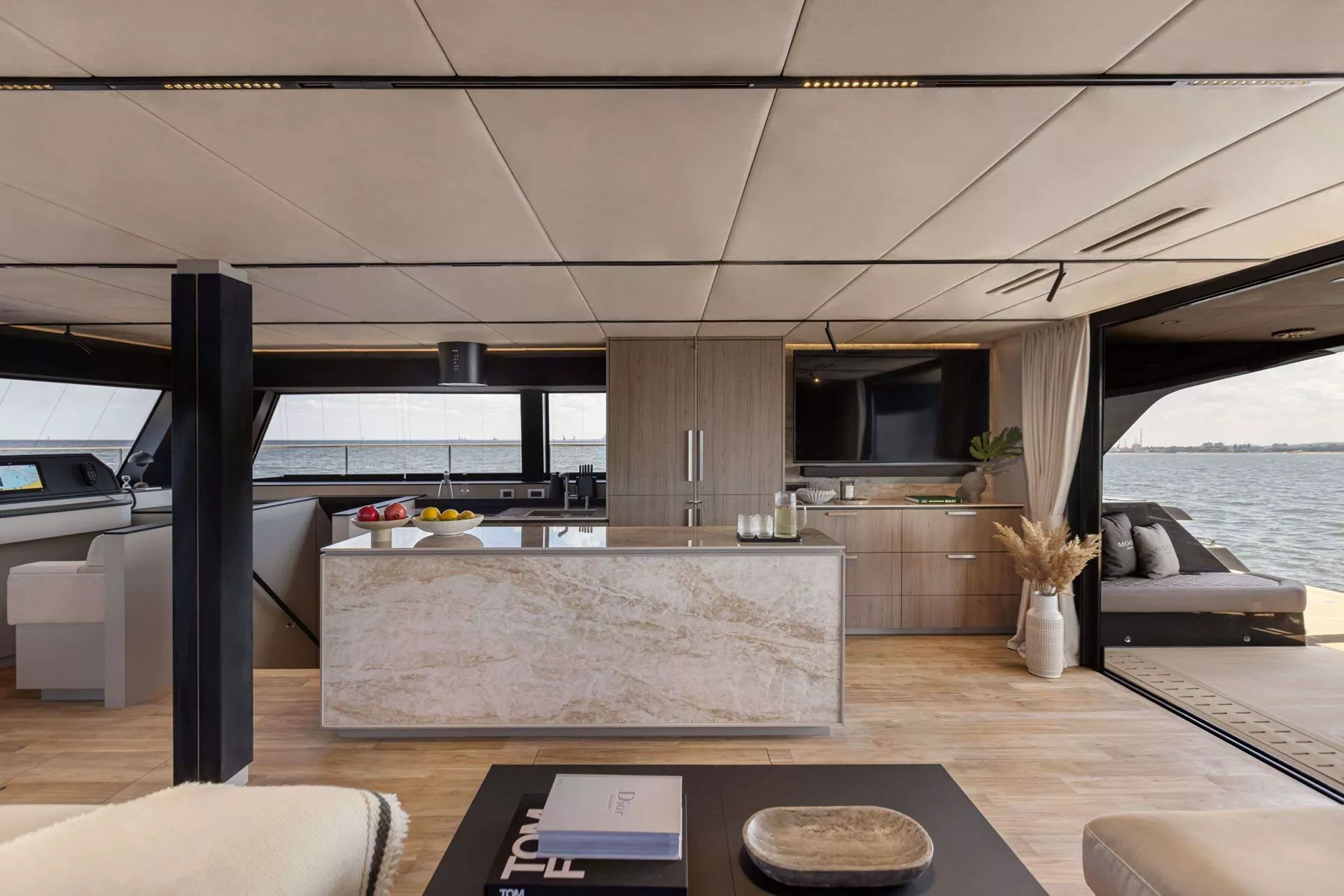 The Moon 6ty catamaran is a fusion of unparalleled luxury, precise technology, and elegance. Designed for the most discerning clients seeking not only unforgettable adventures on the water but also ultimate comfort and prestige. The MOON 6ty is a premium yacht that combines exceptional sailing performance with a modern, sophisticated design, offering the choice between a sailing and motor version.