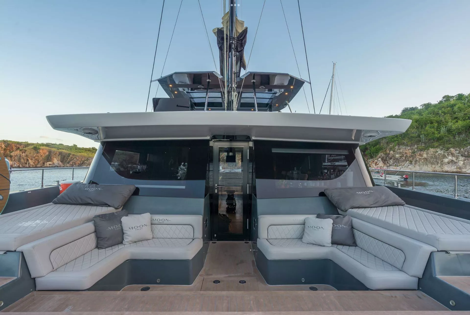 The sailing version of the MOON 6ty features an innovative sail management system. All lines required for sail handling are led to a single location at the helm station, ensuring ease of use and convenience. This allows the entire crew to enjoy a comfortable sailing experience without worrying about complex maneuvers while maintaining a sense of space and tranquility on board. The MOON 6ty is a catamaran that seamlessly blends advanced technology with timeless luxury, designed to meet the needs of the modern sailor.