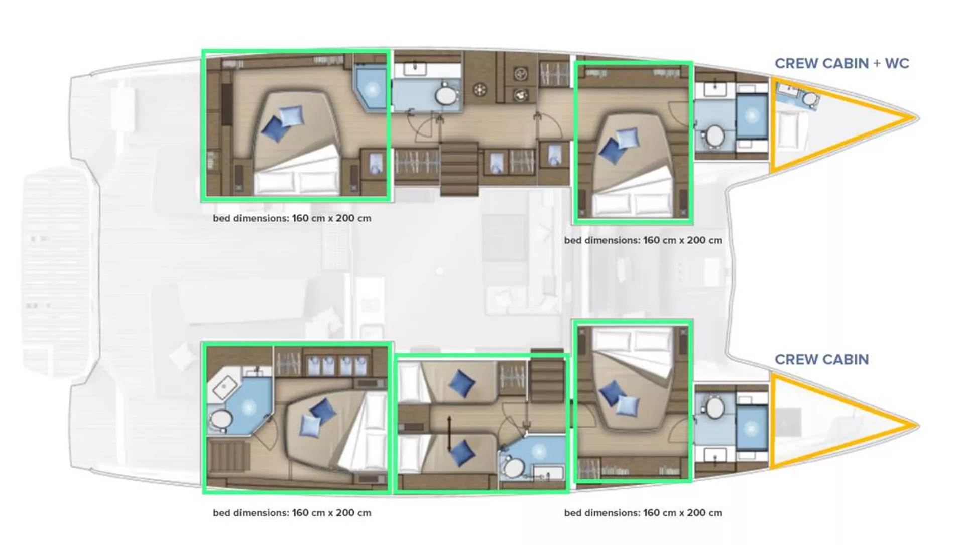 • 2 crew members (CAPTAIN & STEWARDESS), Daily preparation of 2 meals: breakfast and SIMPLE lunch