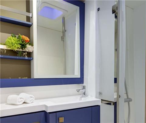 Indulge in the innovative galley/saloon area, providing ample storage space. The redesigned layout ensures a user-friendly saloon with a lounger and an ergonomic watchkeeping station, ensuring a seamless experience under the expert guidance of our experienced crew.
