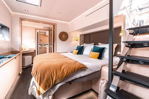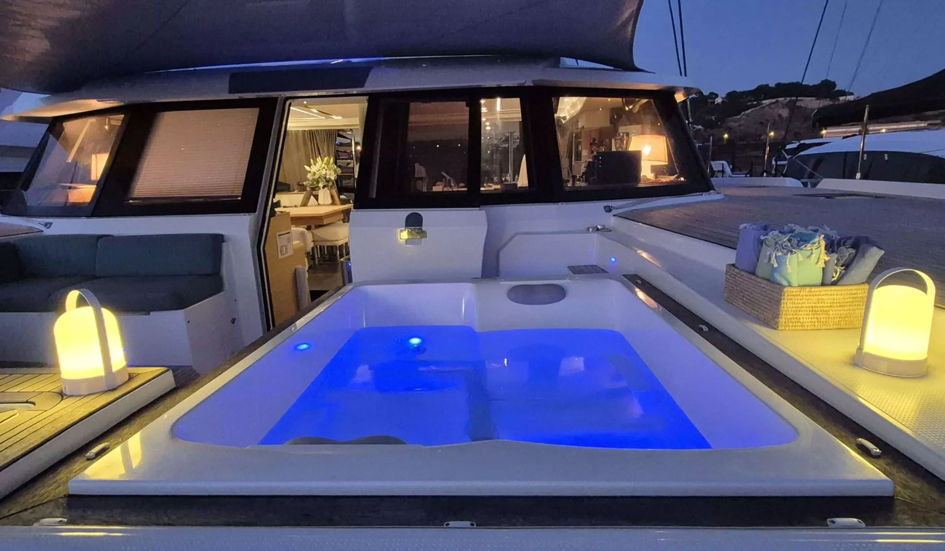 You'll be sailing on a brand new boat, equipped with several headsails to ensure that well-being and performance go hand in hand. Her night-blue hull, teak deck and Jacuzzi will convince you that you can really let go, the signature of an exceptional moment with 'The Blue Dream'.