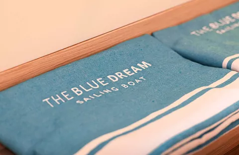 Each guest is given a foutah and a water bottle upon arrival on board.