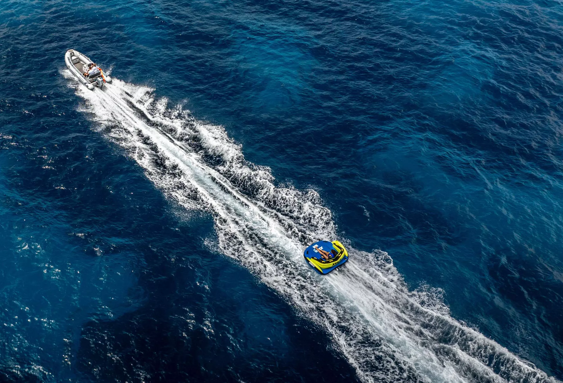 A wide range of water sports including seabobs, paddles, water skis and wakeboard completes the equipment of this exceptional catamaran.