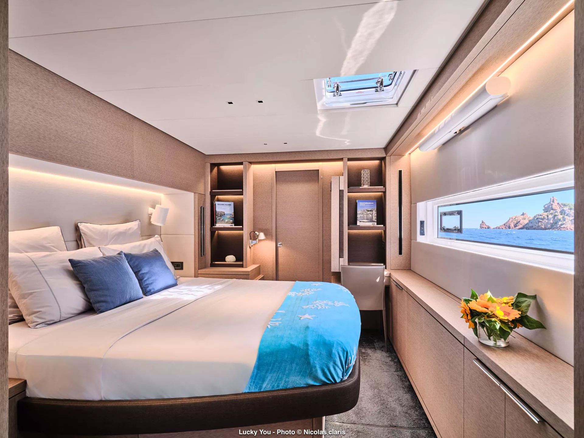 3 Double guest cabins each with en-suite. Galley down with crew in the adjacent bunk cabin.