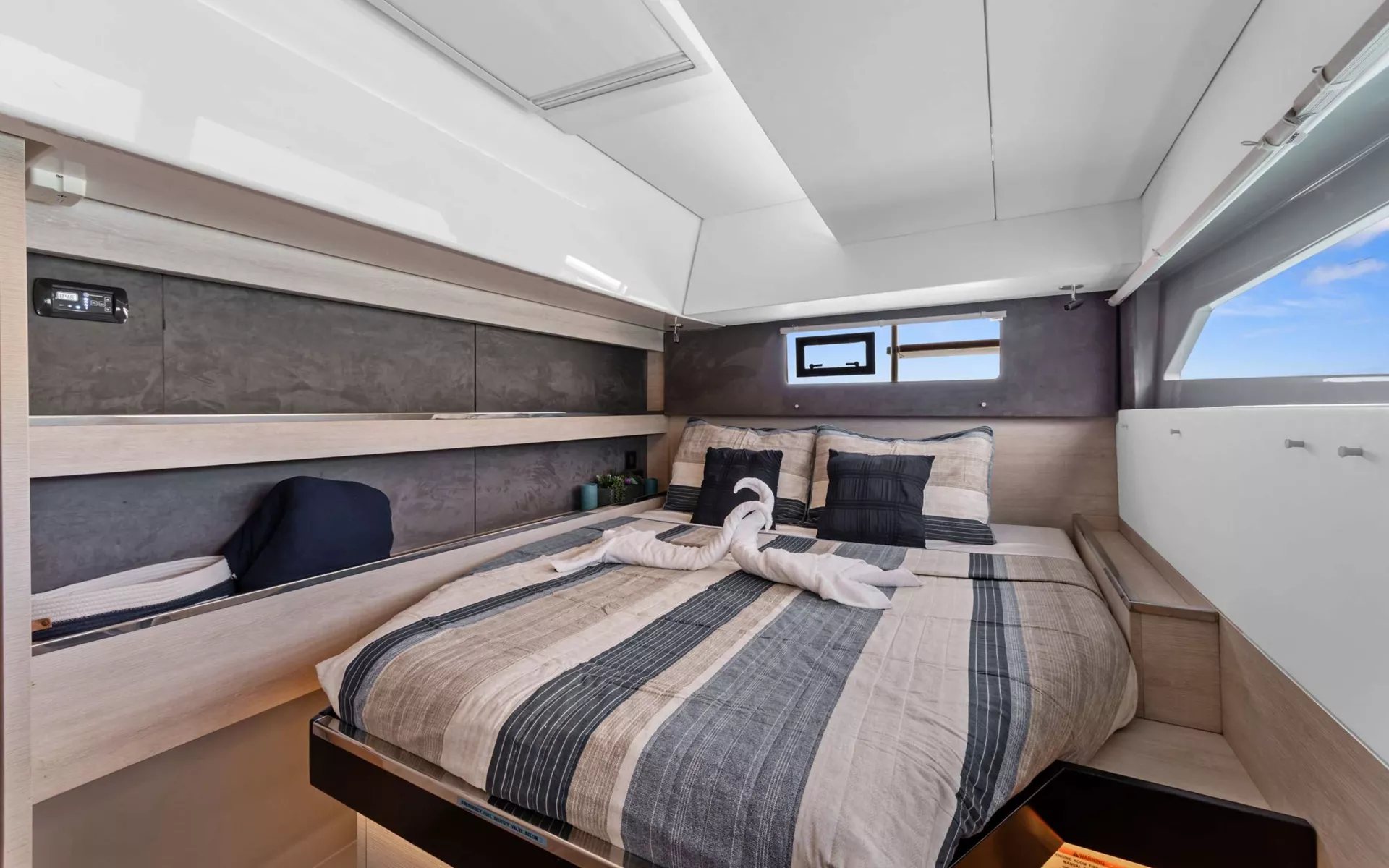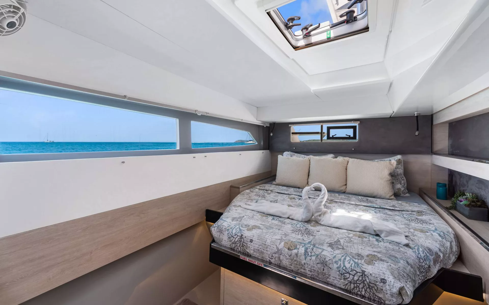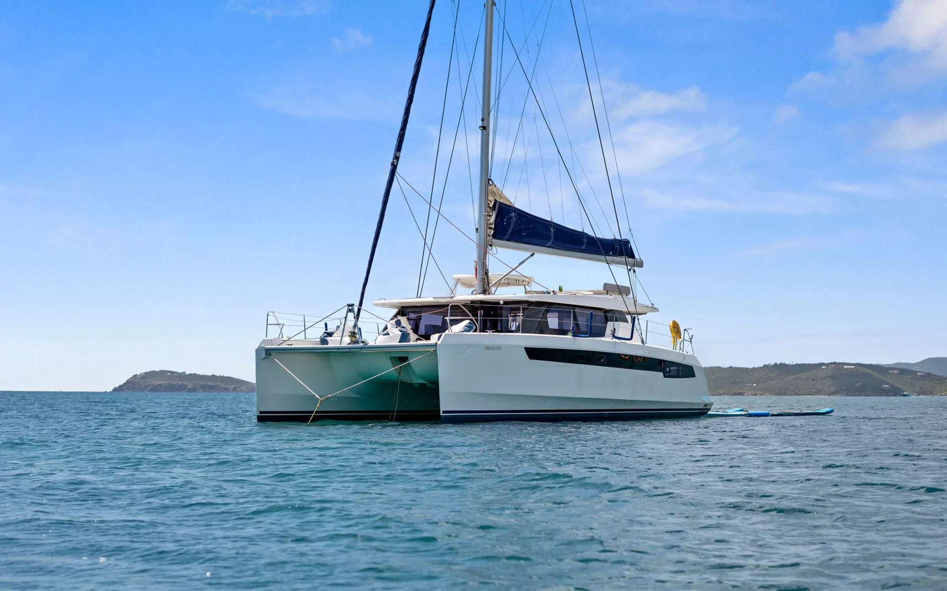 ONE II LOVE is a 2019 50’ Leopard sailing catamaran made for effortless Caribbean cruising with a bright, comfortable layout and plenty of outdoor living. Sleeps up to 6 in 3 cabins: a Master suite with extra storage and a cozy seating nook, plus 2 Queen cabins—each with a private ensuite and zoned A/C for personalized comfort. Highlights include panoramic flybridge lounging with an L-shaped settee and sunbed, a bow trampoline for front-row wave watching, and both forward and aft cockpits so everyone can claim their perfect spot—sun or shade. Settle into relaxed days under sail, then unwind at anchor with island views all around. Simple, stylish, and built for comfort—ONE II LOVE delivers a charter week you’ll want to replay.