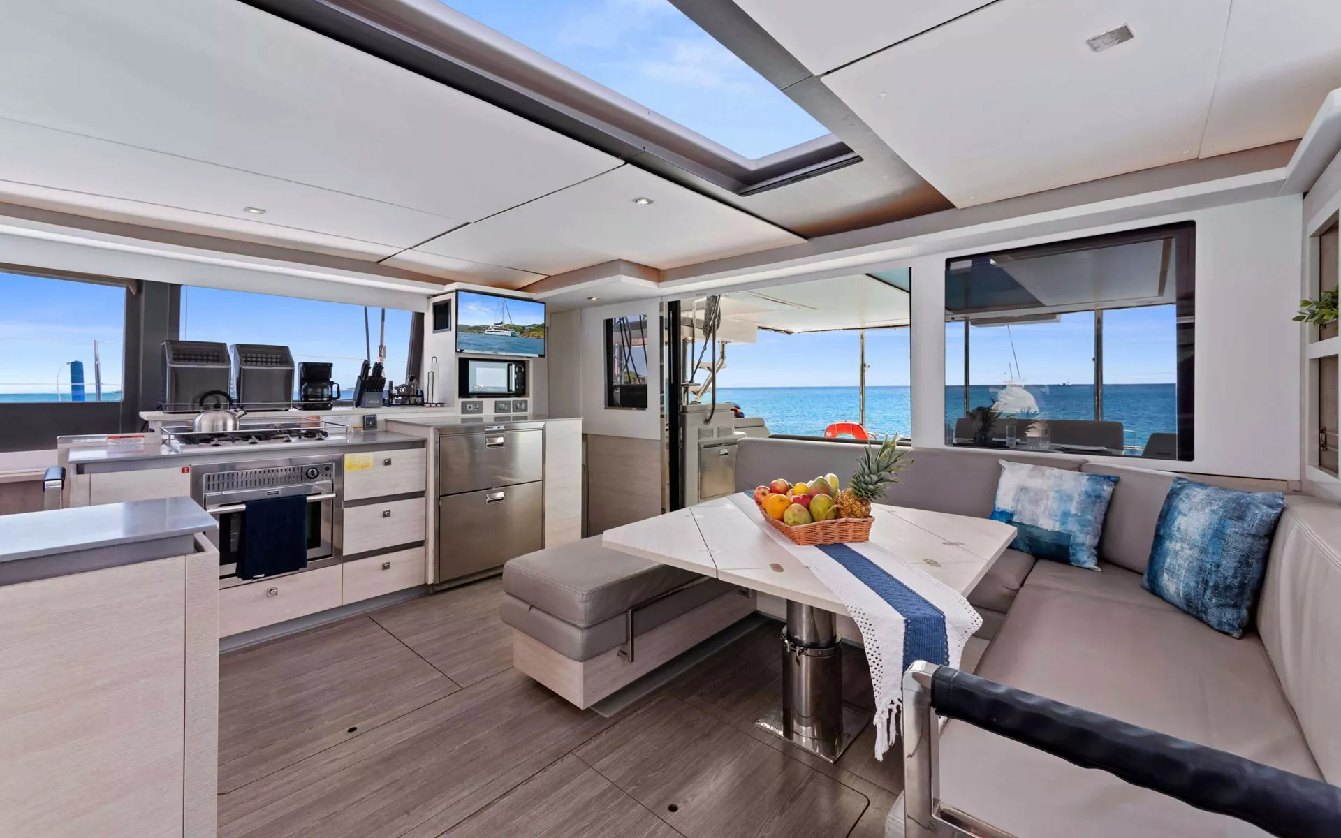 Enjoy a relaxed evening onboard before your charter begins.