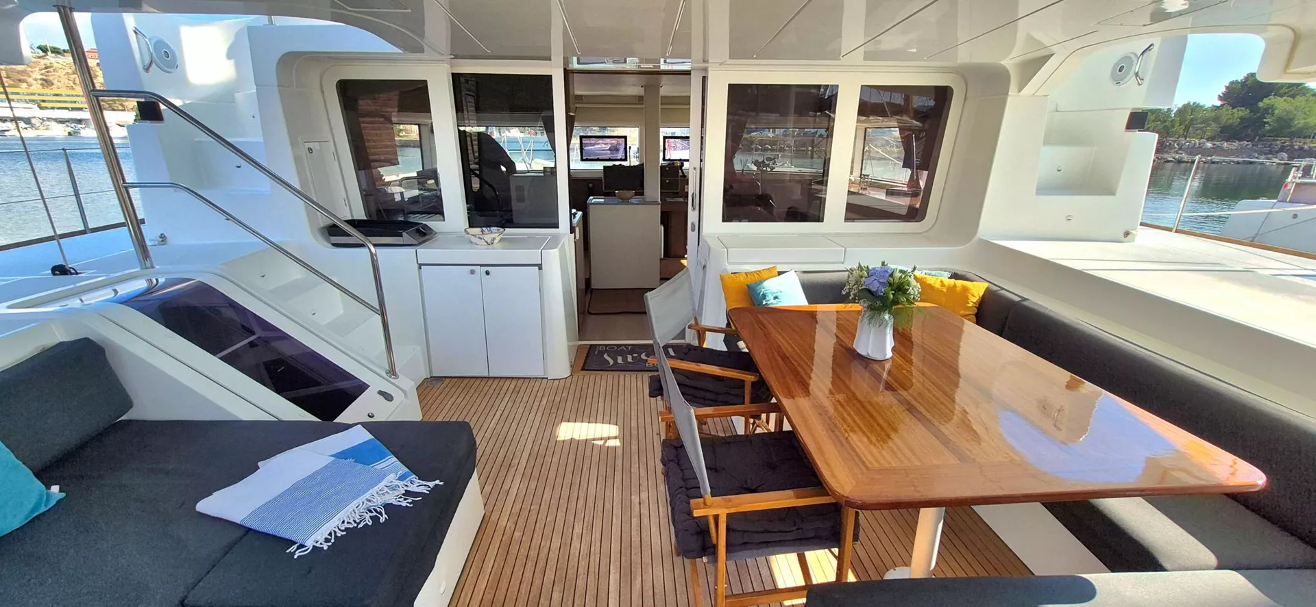 Her spacious exterior deck offers plenty of sunbathing space.