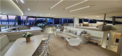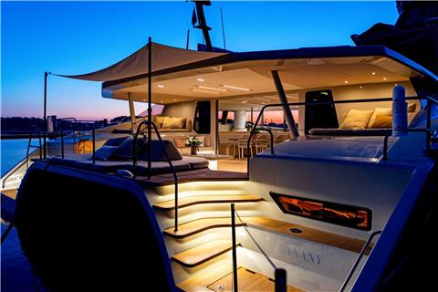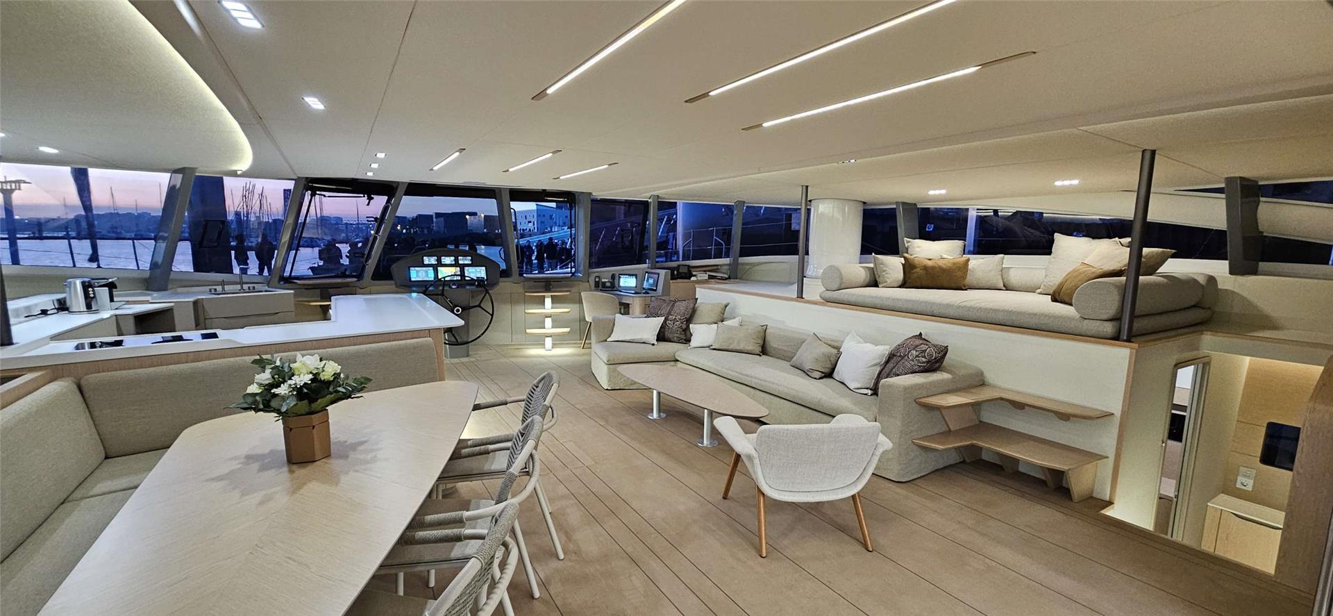 Ganany offers over 200m2 of living space, divided between the forward and aft cockpits, with several great sofas and sun loungers, a spacious saloon and 4 Queen guest cabins (two of which can be converted into twins).