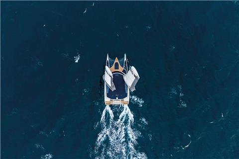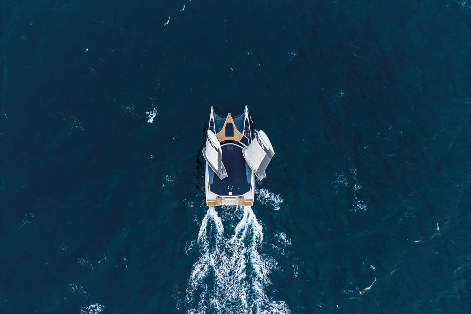 Right from the construction stage, the materials have been bio-sourced, and everything has been designed to be virtuous. The boat is equipped with two inflatable and automated wings, offering 35% more efficiency.