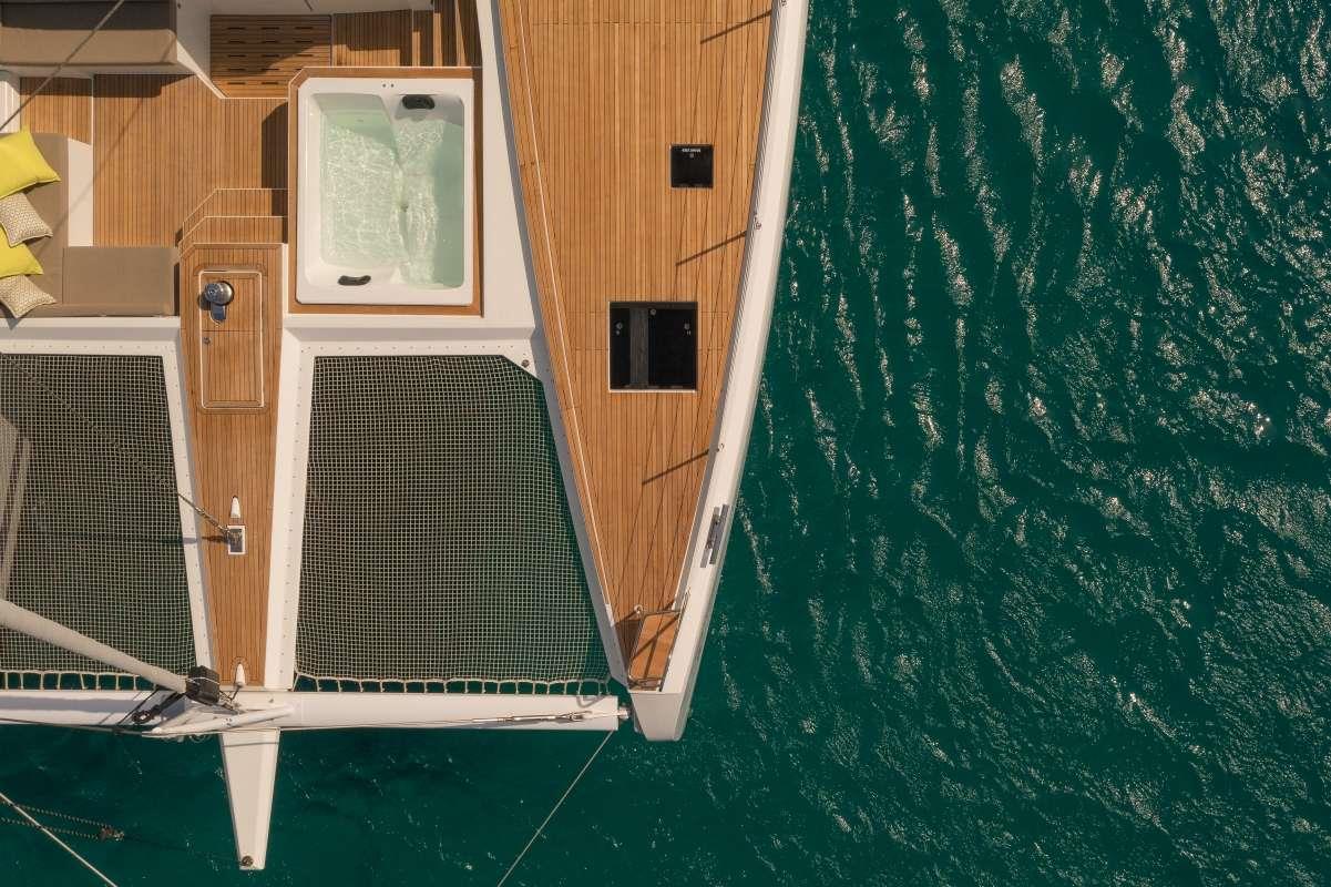 S/Y AETHER epitomizes luxury in a catamaran. Featuring an expansive flybridge with an authentic ocean terrace and a forward cockpit with a jacuzzi, she offers unparalleled comfort and style. Whether you’re seeking the thrill of sailing or the tranquility of lounging on sunbathing beds, S/Y AETHER provides the perfect setting.
