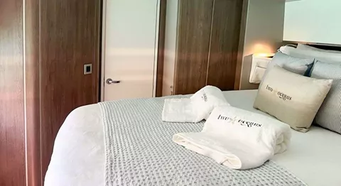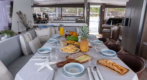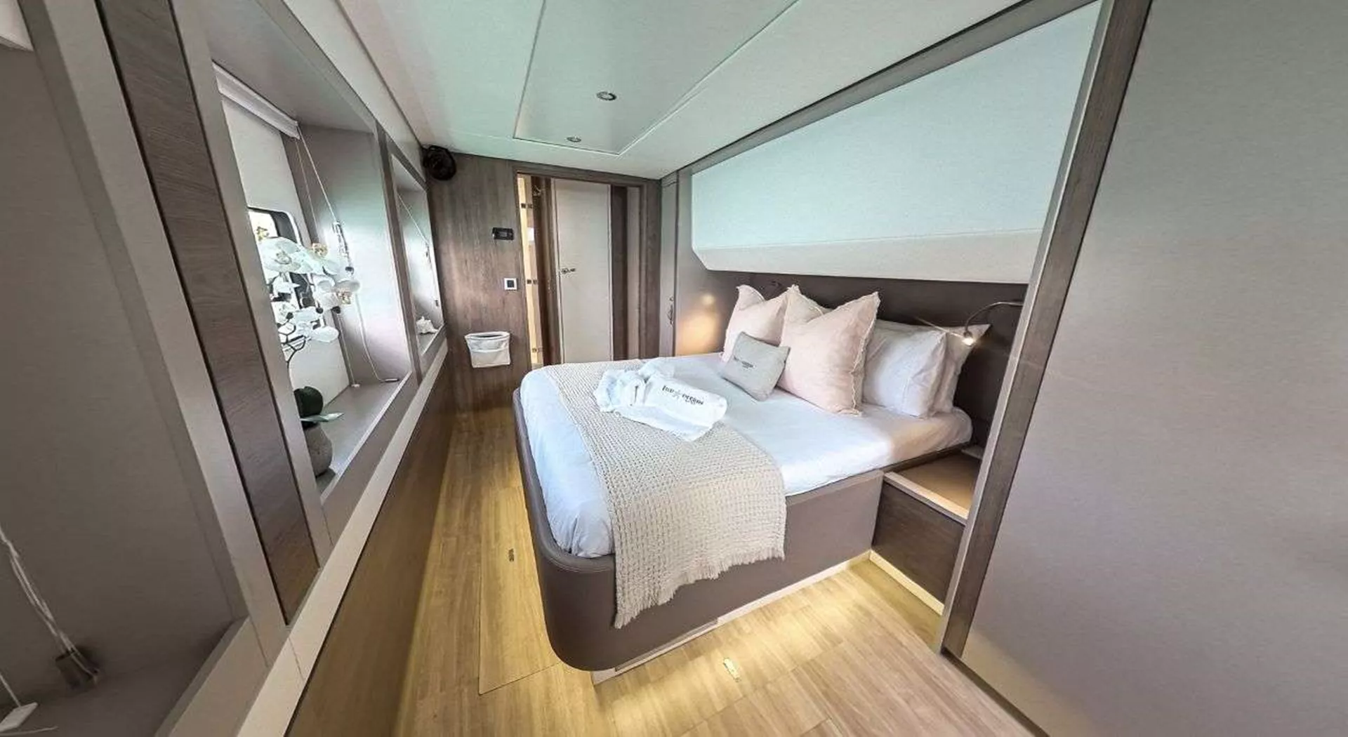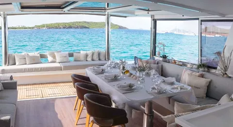 * Three distinct areas: Main salon, flybridge, and foredeck for flexibility and exclusivity