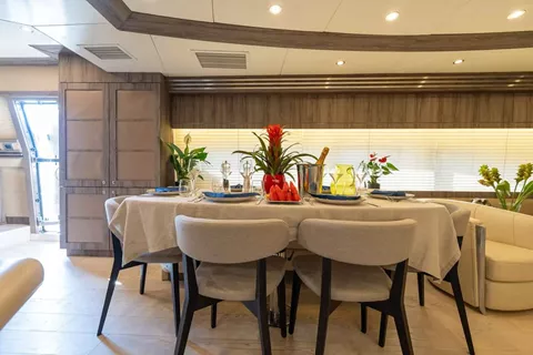 The yacht offers accomodation for up to 8 guests in in 4 suites comprising a master suite, one VIP cabin and two twin cabins.