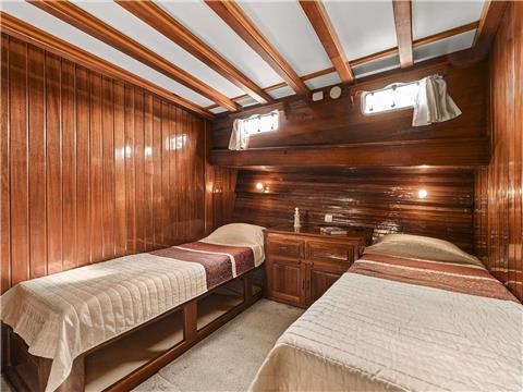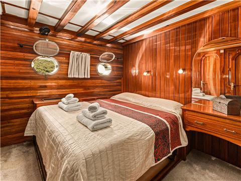 - Twin Cabin (12.5 m2) with 2 beds (80 x 200 cm). Private bathroom with shower box and toilet.