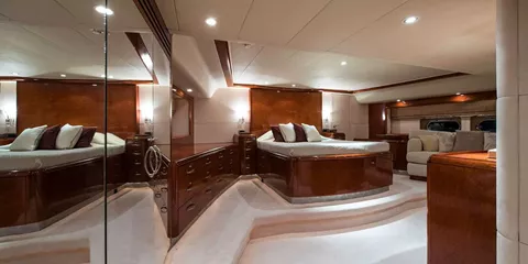 Master cabin: King-size round bed, large bath, shower
