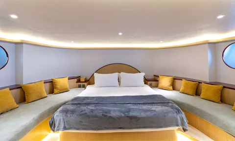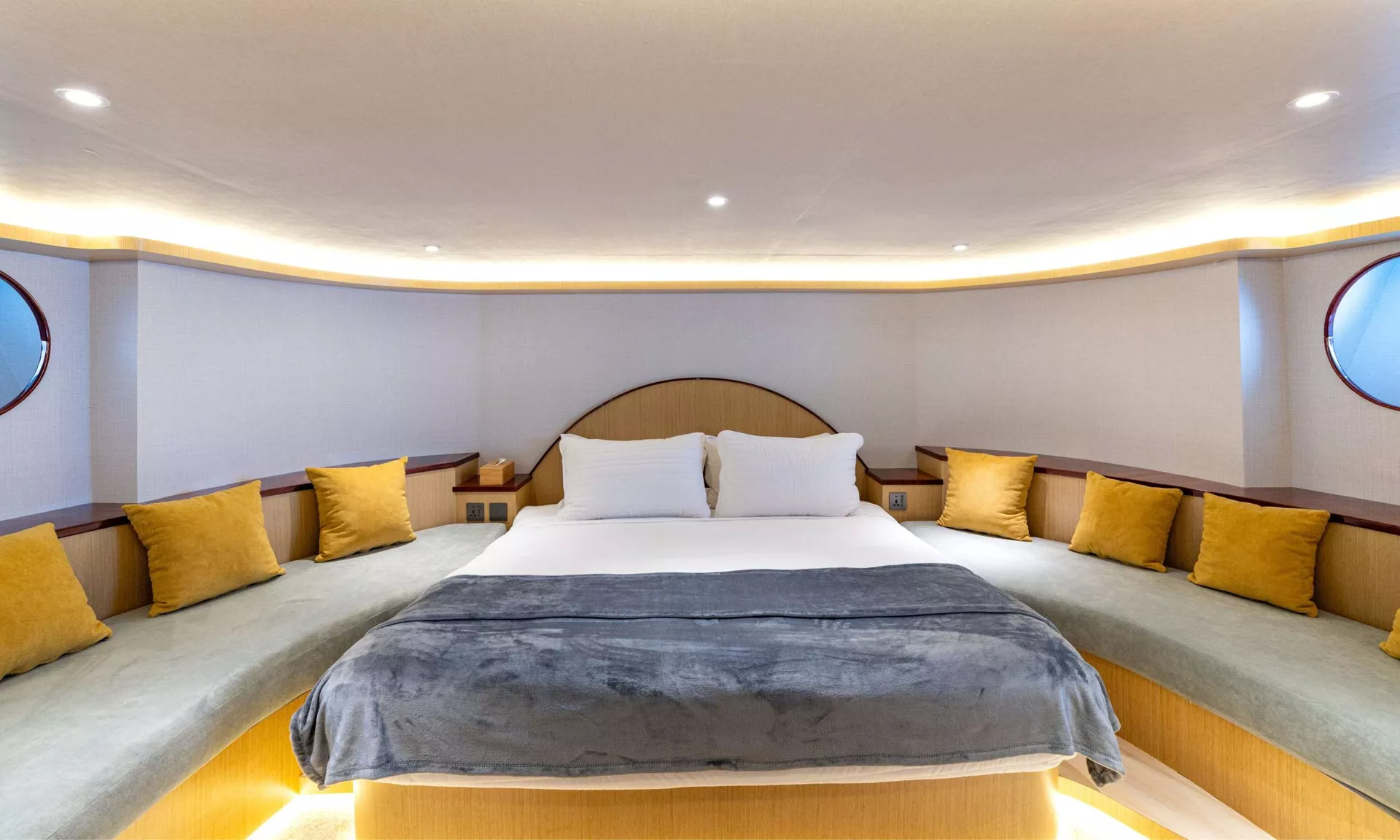 1 x Master cabin: spacious, premium bedding, large windows for scenic views