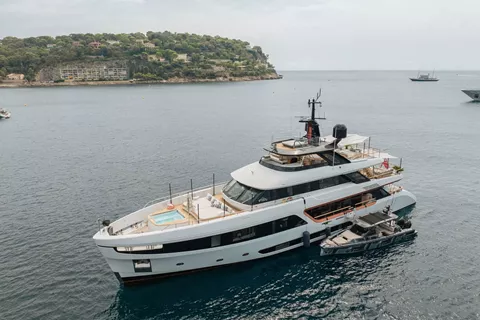 Delivered in 2023, ALLURIA’s contemporary interior, light-flooded rooms, and modern features are inspired by the glamorous Motopanfilo yachts built over 50 years ago. Accommodating 10 overnight guests in five cabins, she has a multitude of communal spaces and amenities to appeal to a mixed charter group or families alike.
