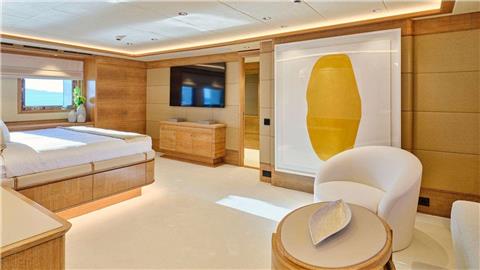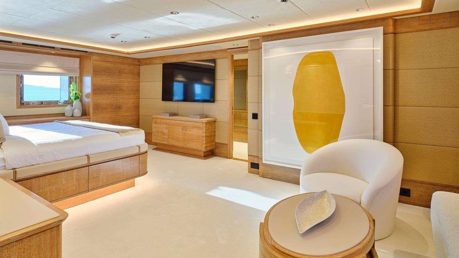 Full-beam master cabin with a king-size bed, spacious study, walk-in closet and steam bath.