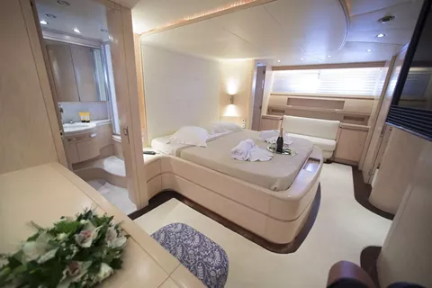 Her well-designed layout accommodates up to 12 guests in five comfortable cabins. These include a VIP cabin on the main deck, a full-beam Master suite featuring a private en-suite bathroom with an indoor Jacuzzi, a VIP cabin on the lower deck, and two Twin cabins, each with an additional Pullman berth—making her ideal for both families and mixed charter groups.