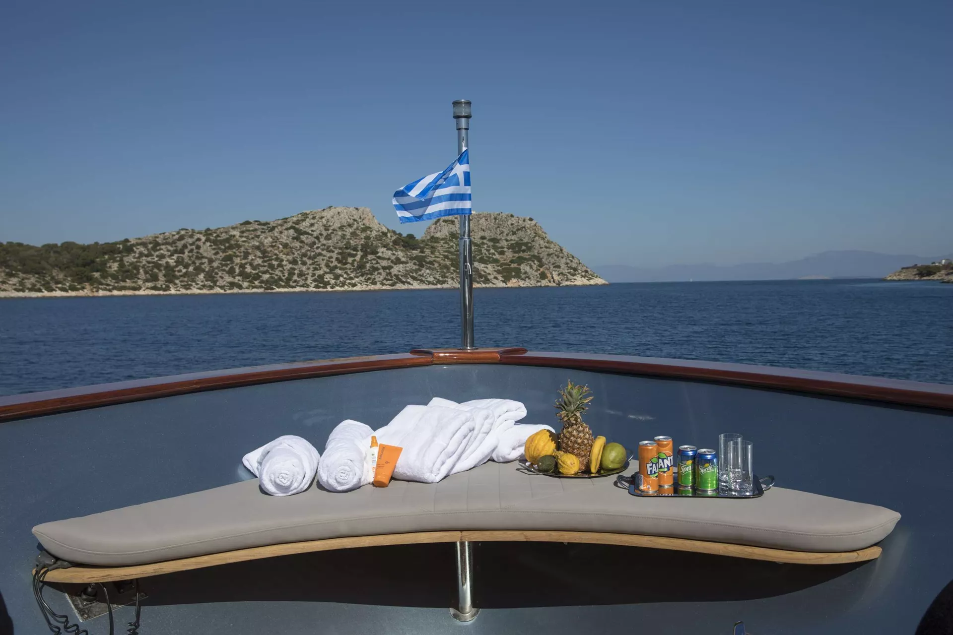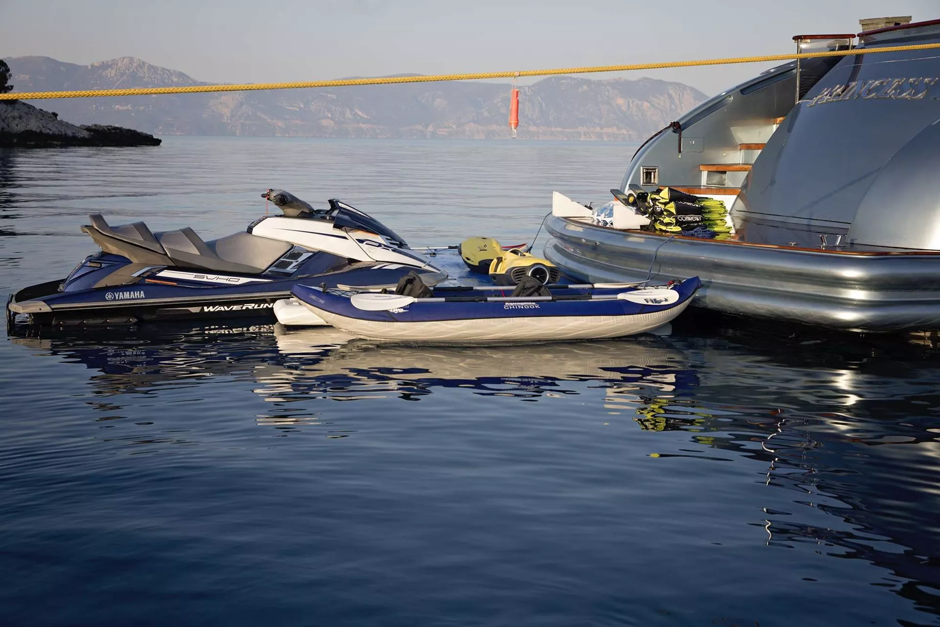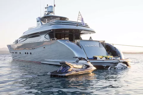 Guests can relax across spacious deck areas, from the sun pads forward to the inviting aft deck and flybridge, or enjoy easy access to the sea via the swim platform. PRINCESS L also boasts an impressive selection of water toys, ensuring endless fun on the water throughout the charter.